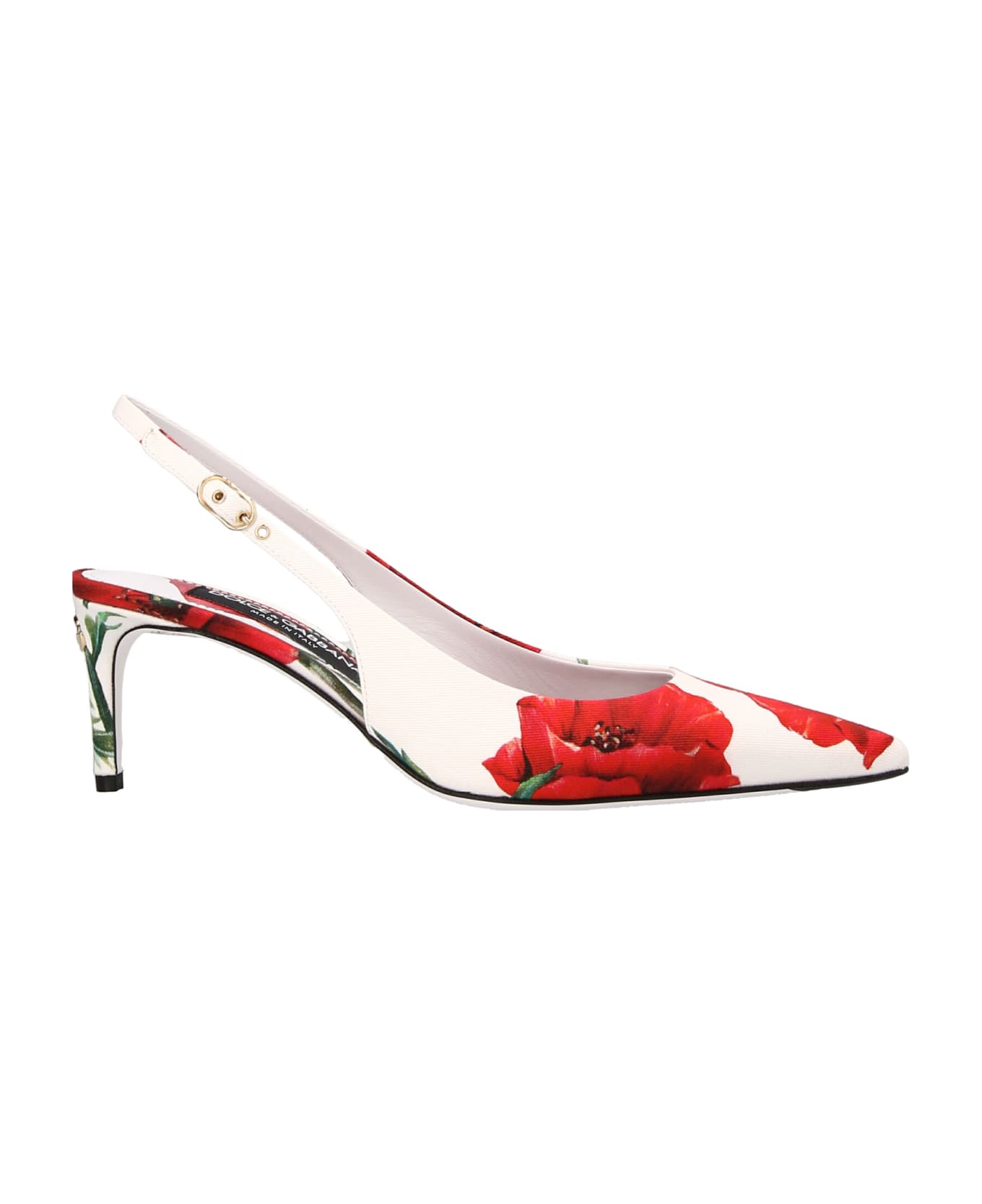 Floral printed fabric slingback slingbacks with strap at the side. Composition: