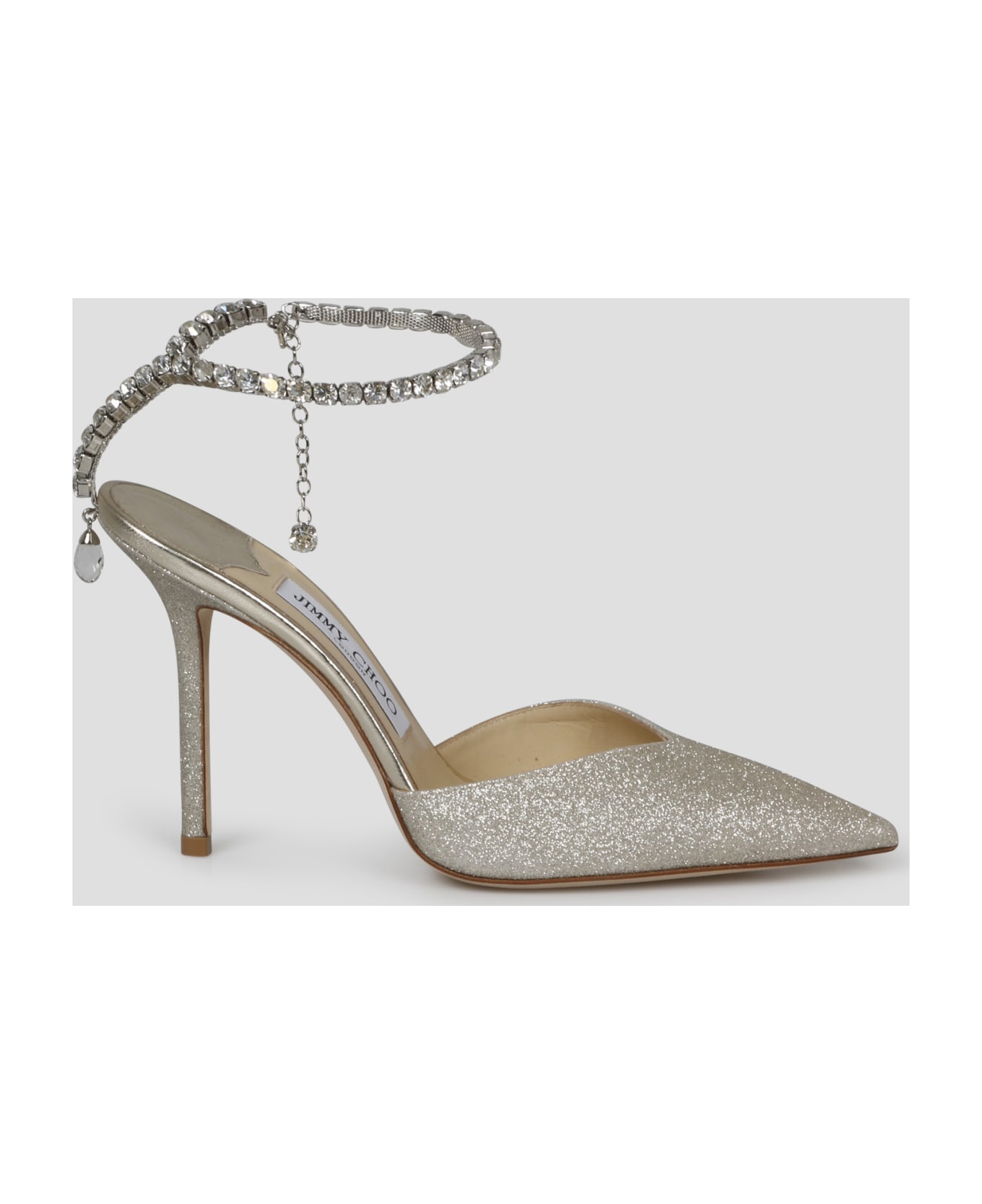 Saeda pumps by Jimmy Choo, in leather with glitter powder. - Pointed design