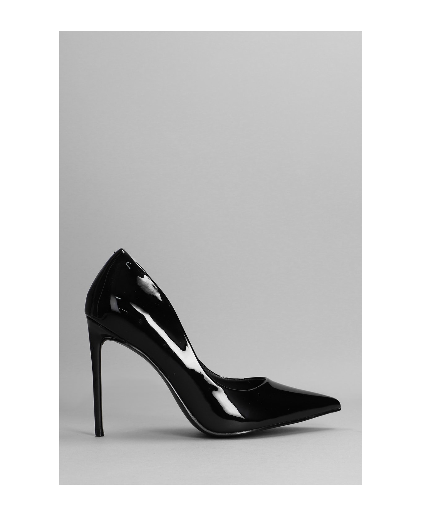 Vala Pumps in black patent leather, pointed toe, leather sole, heel 105mm, patent leather, Made in China