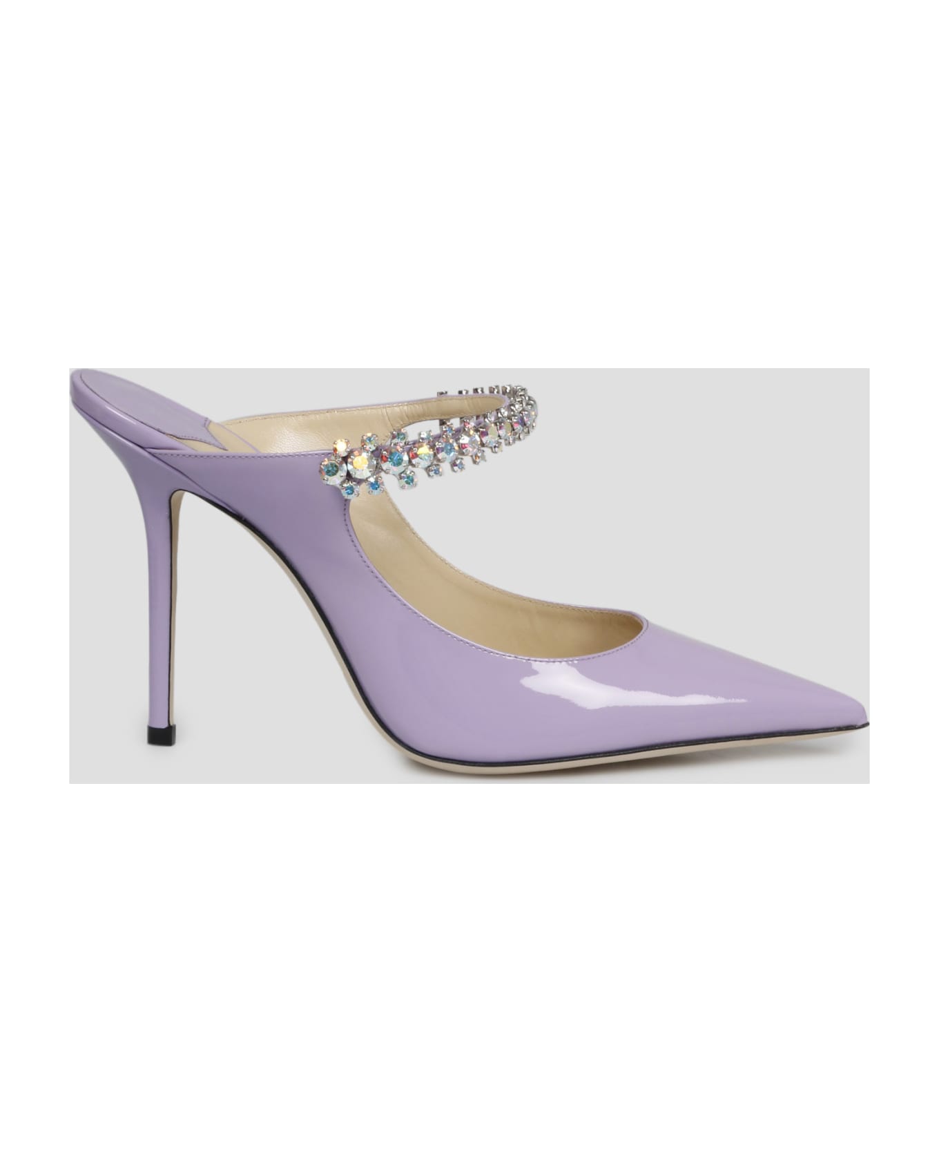 Bing Sabot by Jimmy Choo, in patent leather with crystal strap. - Heel: 10cm