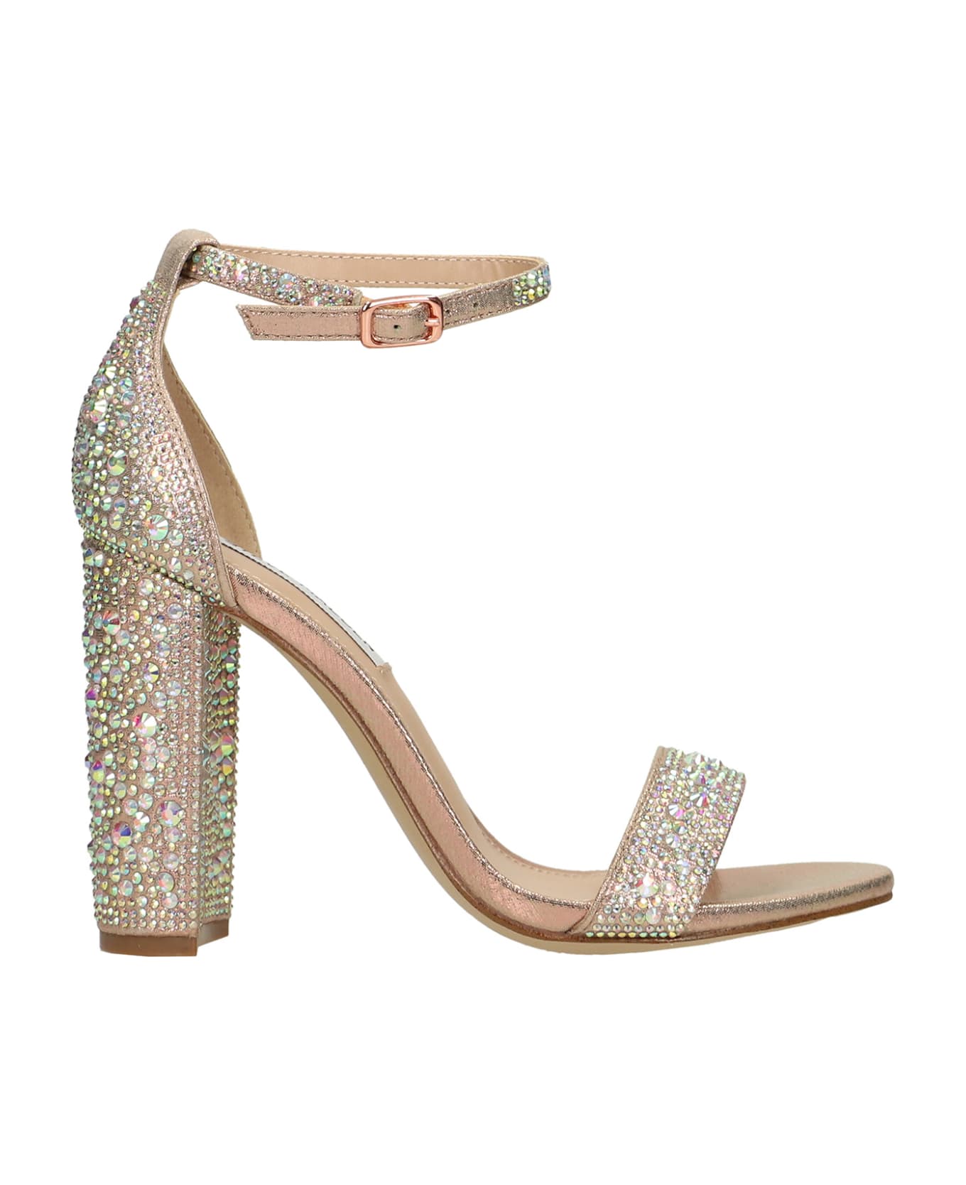 Carrson-G Sandals in powder leather, 100% suede, leather sole, one strap, strass detail, ankle strap, 100 mm heel, Made in China