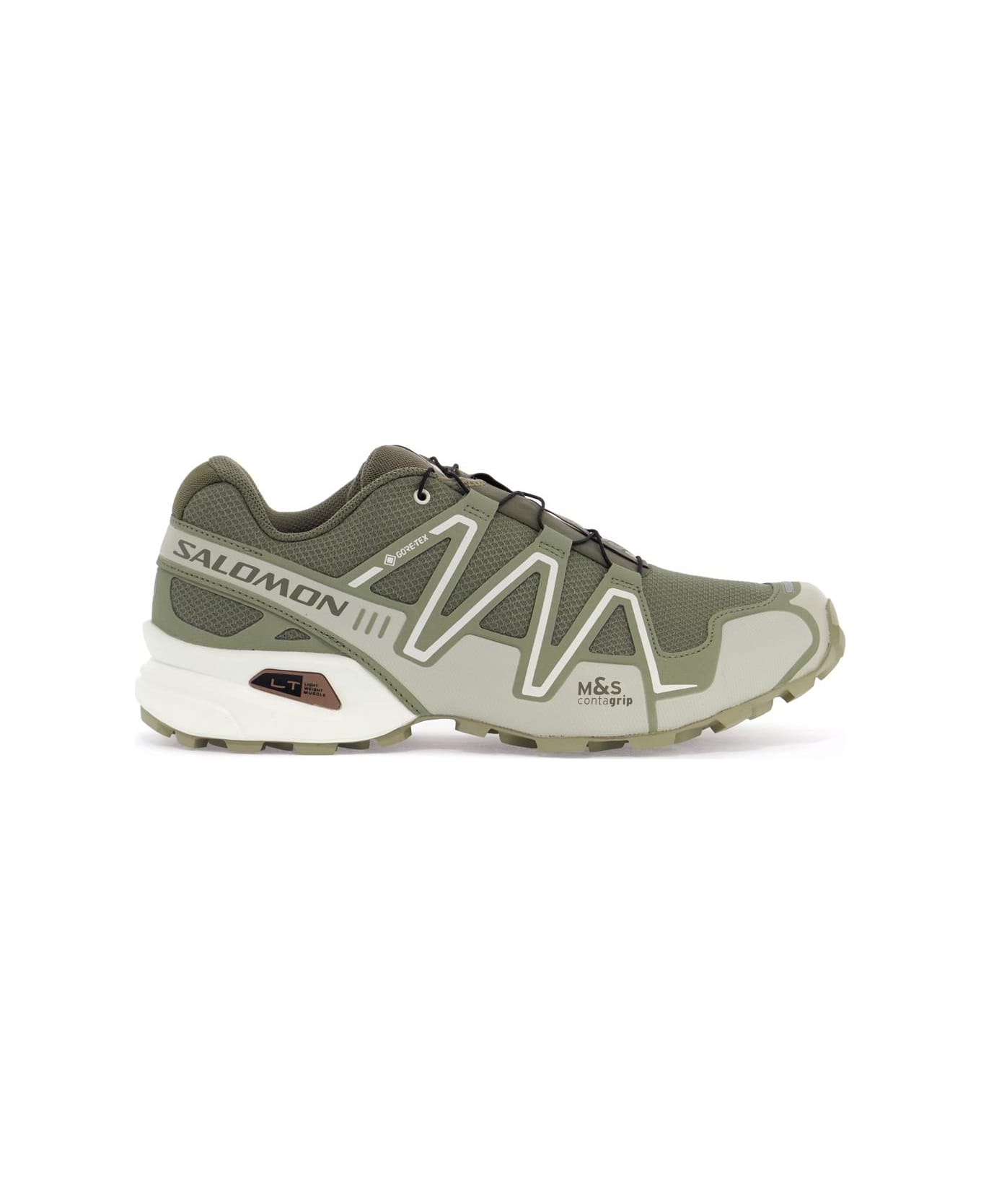 The SPEEDCROSS 3 trail running shoes by Salomon are made with technical mesh fabric and a waterproof, breathable GORE-TEX membrane. They feature a one-pull Quicklace lacing system with a pocket on the tongue to store the lace. The front base is covered with a rubber mudguard, and there is a logo on the side. The inner lining is made of breathable fabric and the removable insole is made of OrthoLite technical fabric. The EnergyCellâ ¢ midsole