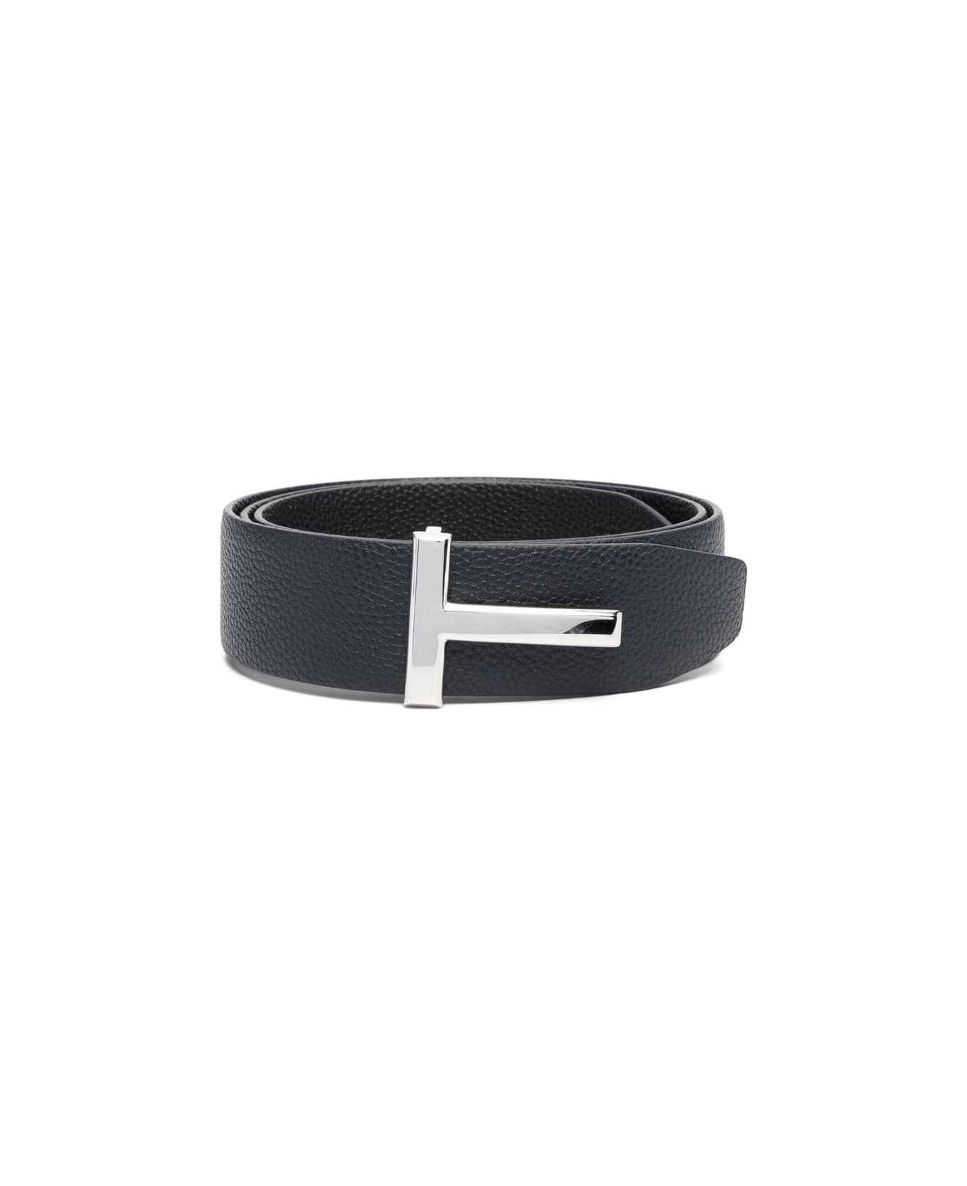 navy blue calf leather reversible adjustable fit logo-buckle detail