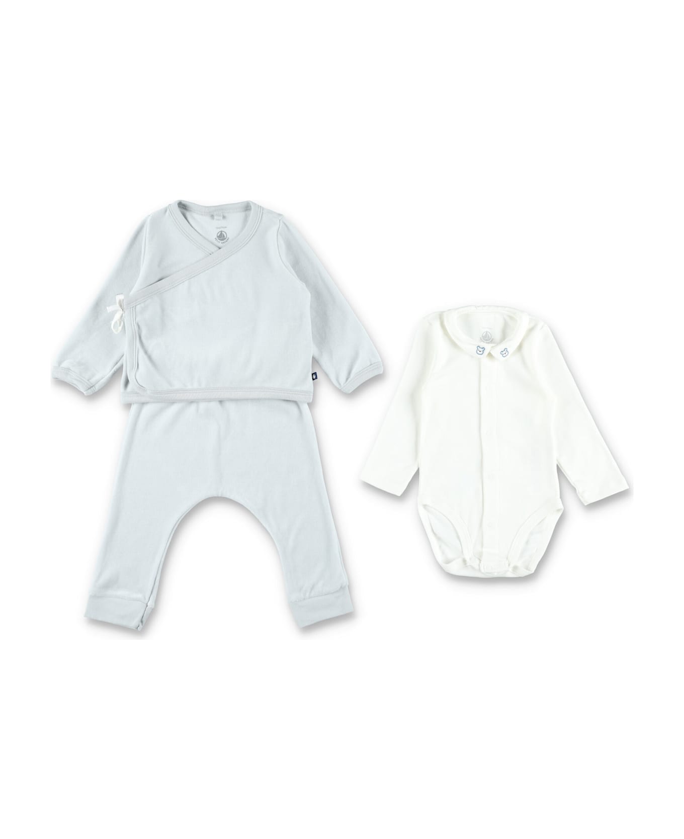 Soft And Cozy, This Petit Bateau Three-piece Set Is Crafted In Plush Cotton Velour, Perfect For Keeping Little Ones Warm During Winter. It Includes A Wrapover Top And An Embroidered Bear Bodysuit. The Elasticated Waistband Ensures Comfort And Ease Of Dressing, Making It An Ideal Newborn Gift. Soft And Warm Cotton Wrapover Top With Side Fastening Bodysuit With Embroidered Bear Motif Pants With Elasticated Waistband