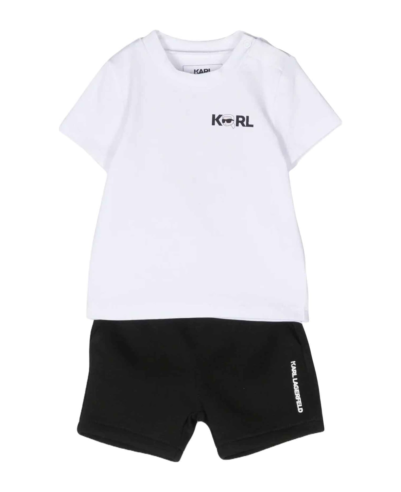 White/black suit baby boy. Short sleeves, round neckline, straight hem, elasticated waist and logo print on the leg. Cotton 95%, Elastane 5%
