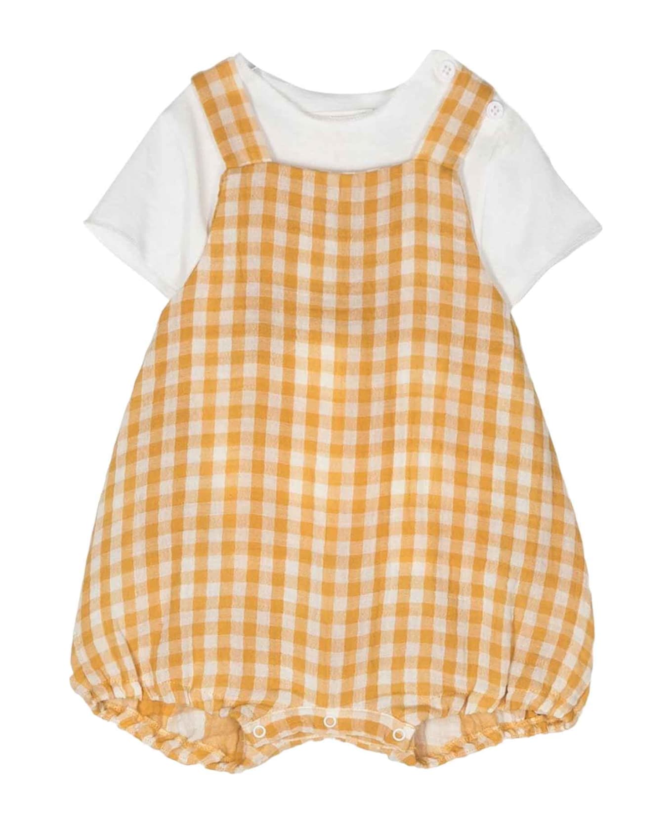 White/yellow romper baby boy TEDDY & MINOU. Check pattern and short sleeves. 100% Cotton