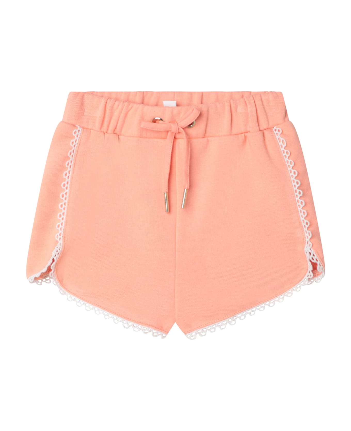 drawstring cotton shorts from CHLOÉ KIDS featuring light orange, cotton, jersey fleece, contrasting trim, drawstring fastening waist and thigh-length. Composition: Cotone, 100%
