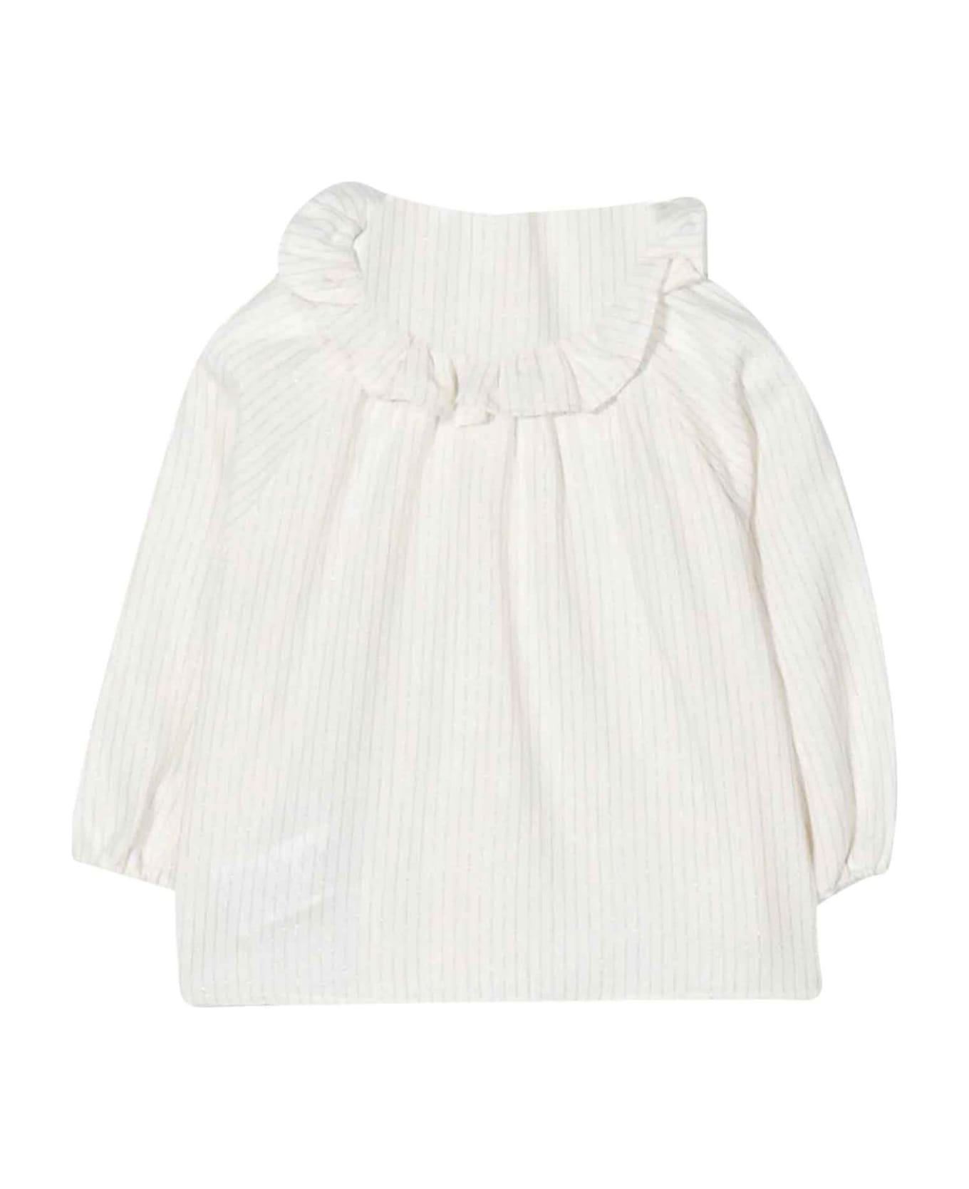 White blouse baby girl TEDDY & MINOU. Detail with ruffles, round neckline and long sleeves. Cotton 100%
