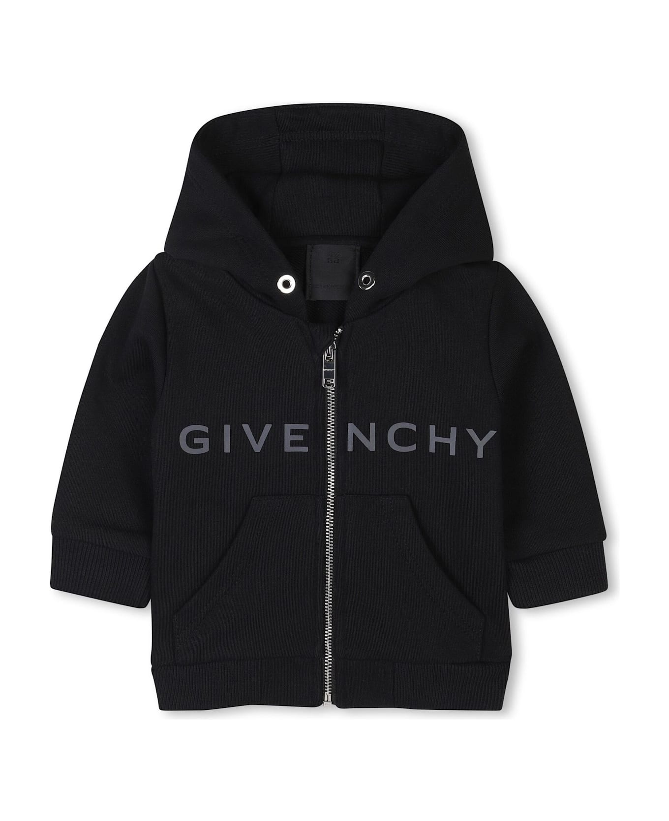Black organic cotton blend hoodie, front zip fastening, classic hood, long sleeves, logo print to the front, two front pouch pockets, signature 4G motif, ribbed cuffs and hem Composition: Organic Cotton, 85% , Polyester, 15%