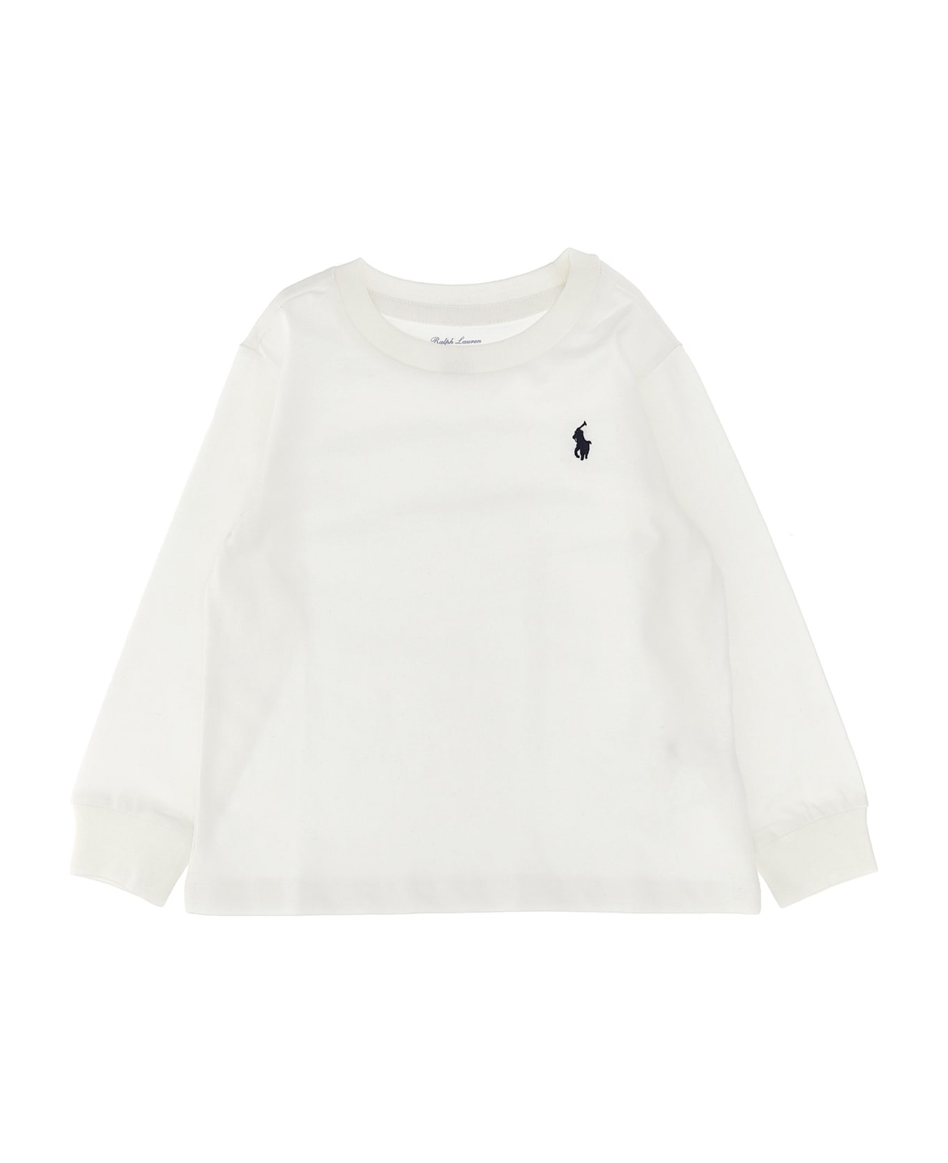 Cotton T-shirt with front embroidered logo, crewneck, and long sleeves