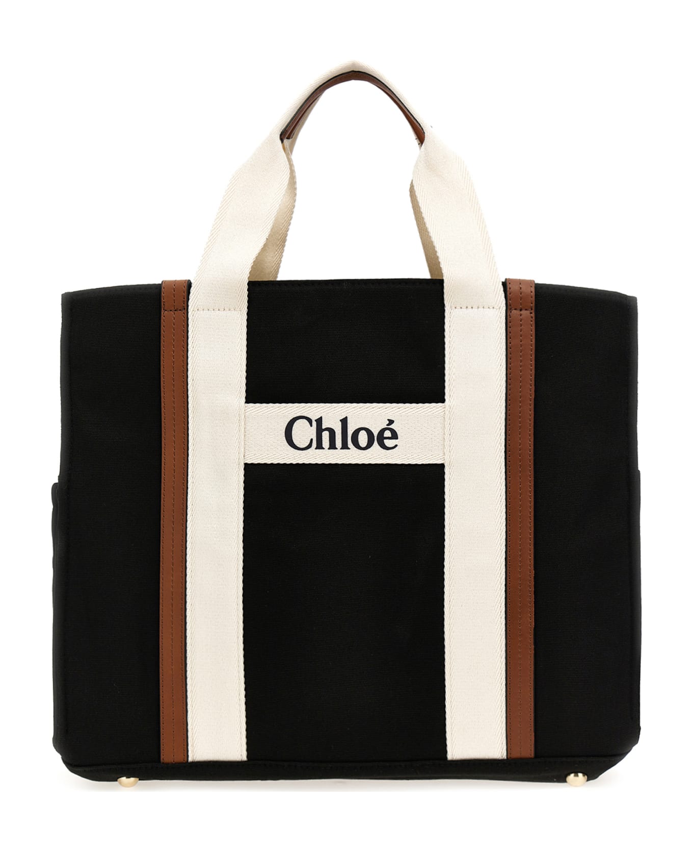 Canvas changing bag with logo print, leather details, double handle, removable shoulder strap, inner clutch bag and changing table. Composition: 100% cotton