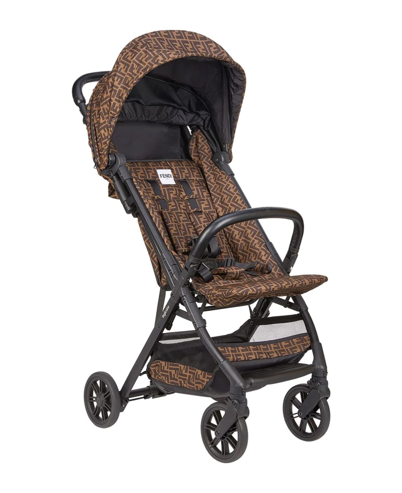 Fireproof stroller in 'FF' fabric All-over cabin logo, wide reclining seat and full-cover canopy with UPF 50+ protection with mesh ventilation insert. The stroller is completely removable and washable. Composition: 100% polyester