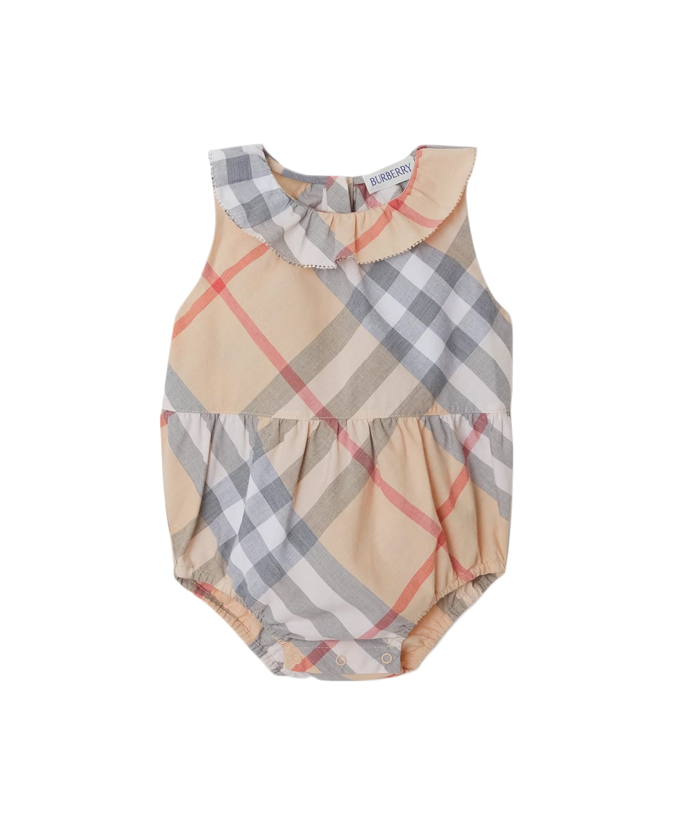 bodysuit In Cotton Woven With Burberry Check. The Model Features Darts At The Waist And A Collar With Curls And Picot Edging.