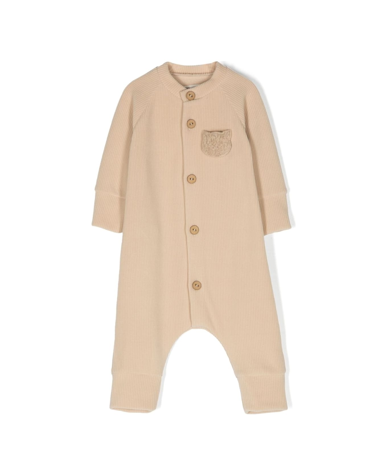 ribbed-knit button-up romper from TEDDY & MINOU featuring beige, stretch-design, ribbed knit, crew neck and long sleeves. Composition: Poliestere, 90% , Elastam, 10%