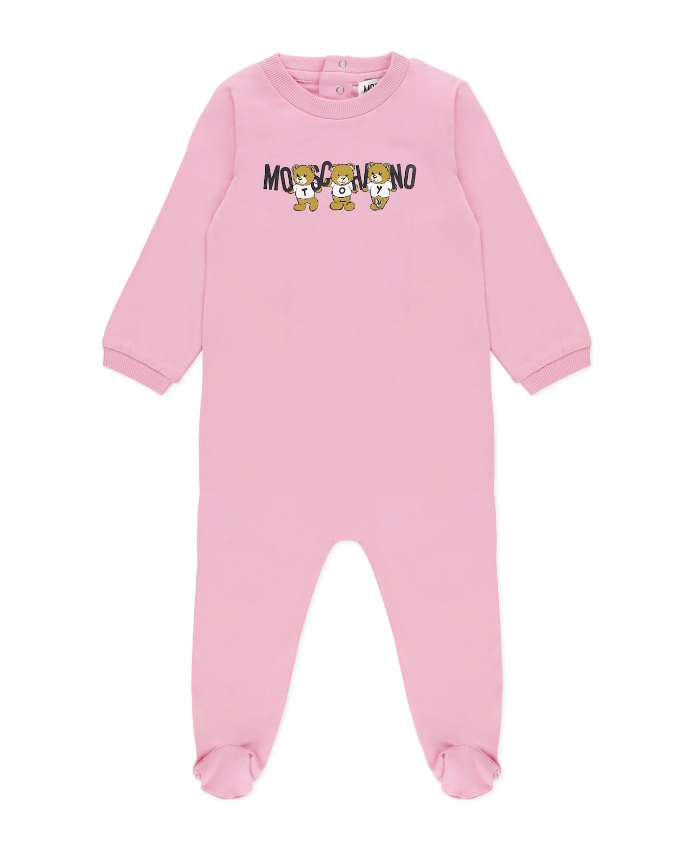 - Pink Moschino Baby cotton onesie for girl - Crew neck - Long sleeves - Rear snap buttons - Front Teddy Bear print with logo Composition: 100% Cotton