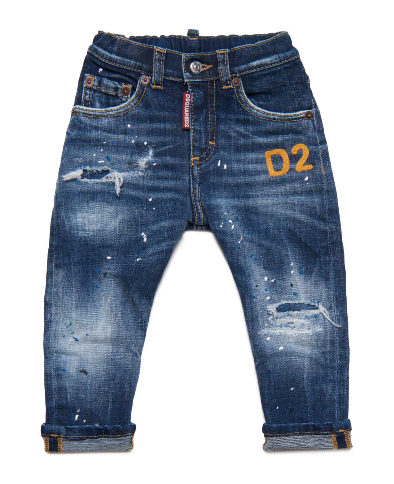 D2p76ab Trousers Dsquared Medium Blue Shaded Jeans With Breaks And Patches