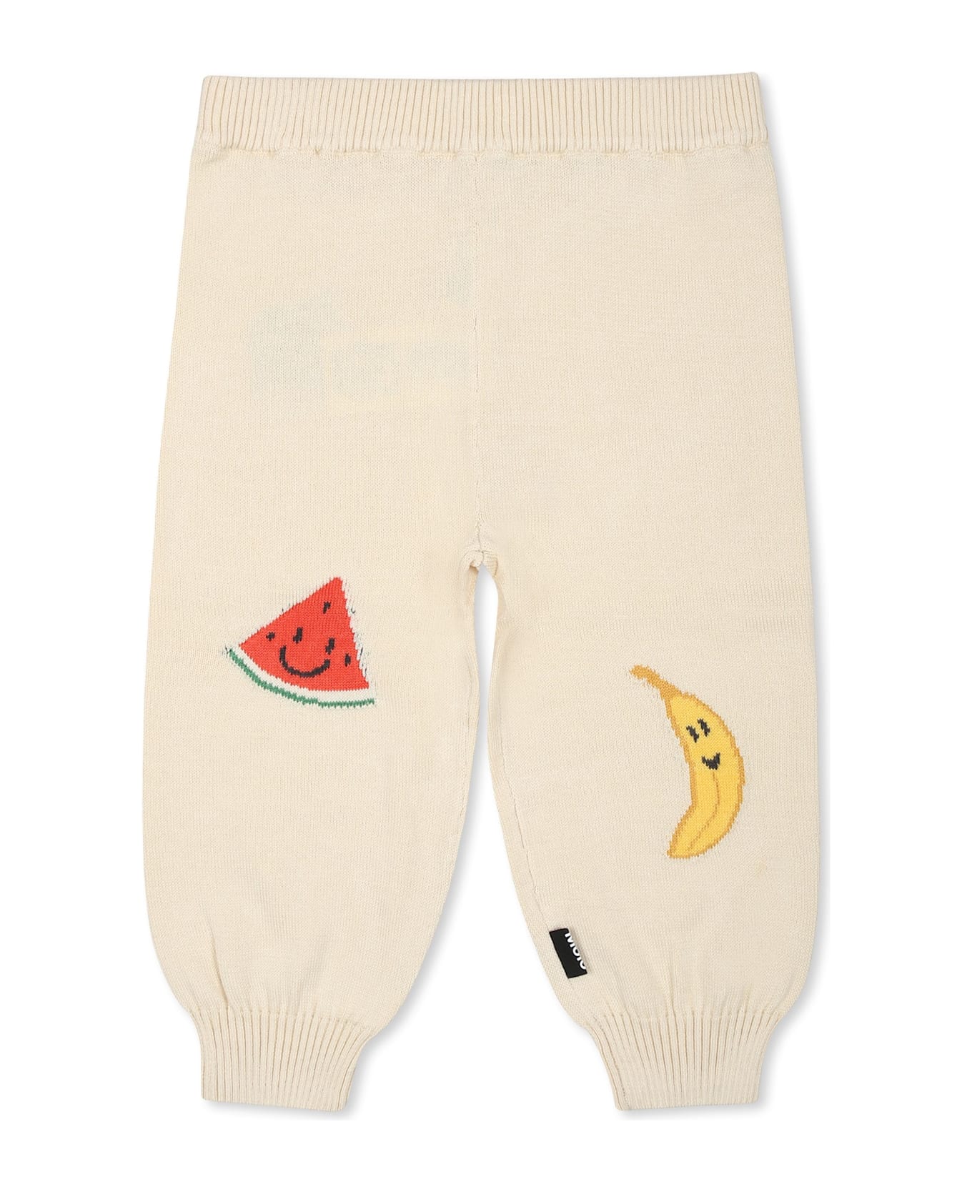 Ivory trousers in GOTS certified organic cotton, with elasticated waist and ribbed ankles. They are embellished with fruit print on the front and back.