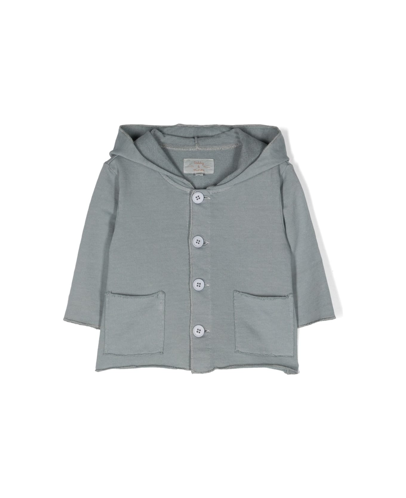 Slate grey, cotton, hooded, front button fastening, long sleeves, two front patch pockets and straight hem. Origin: Italy