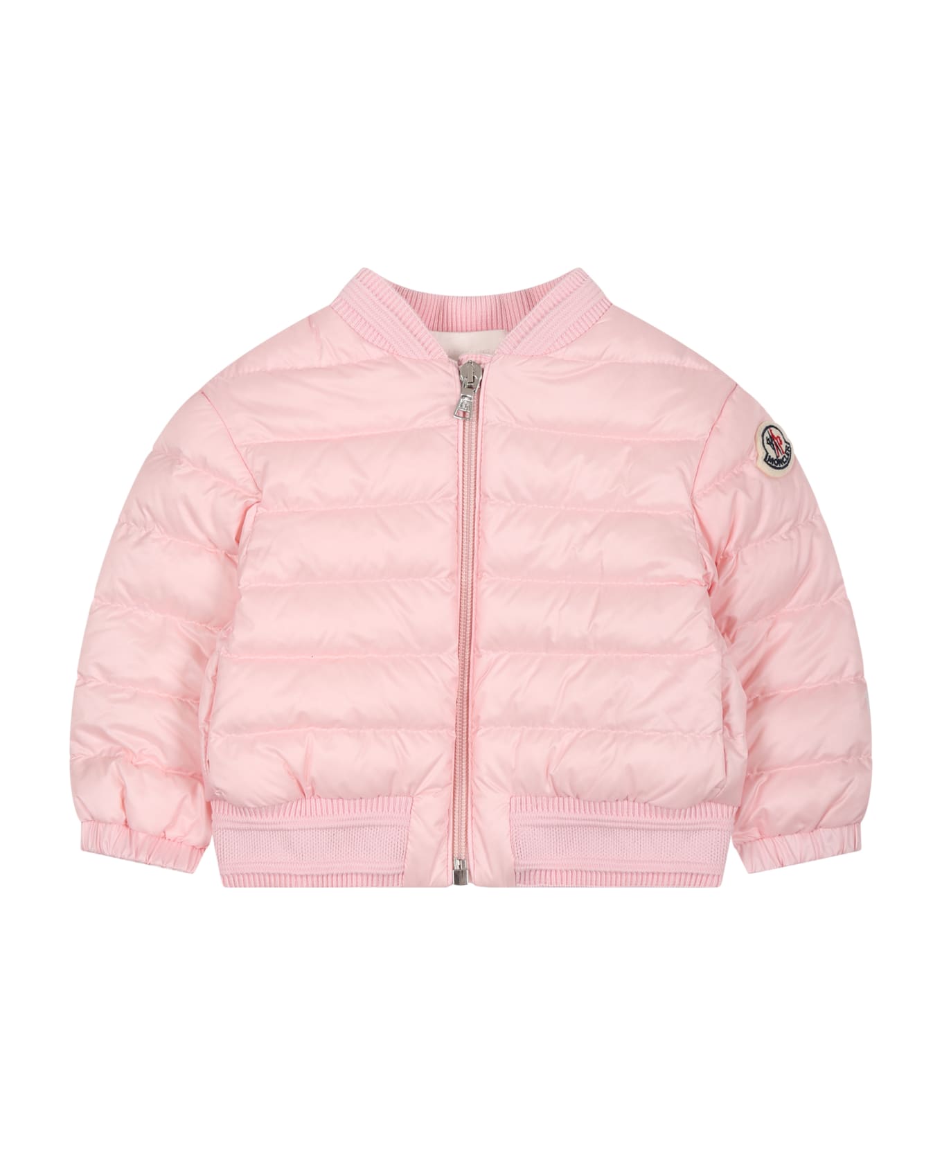 Pink "ter" Down Jacket For Baby Girl With Logo
