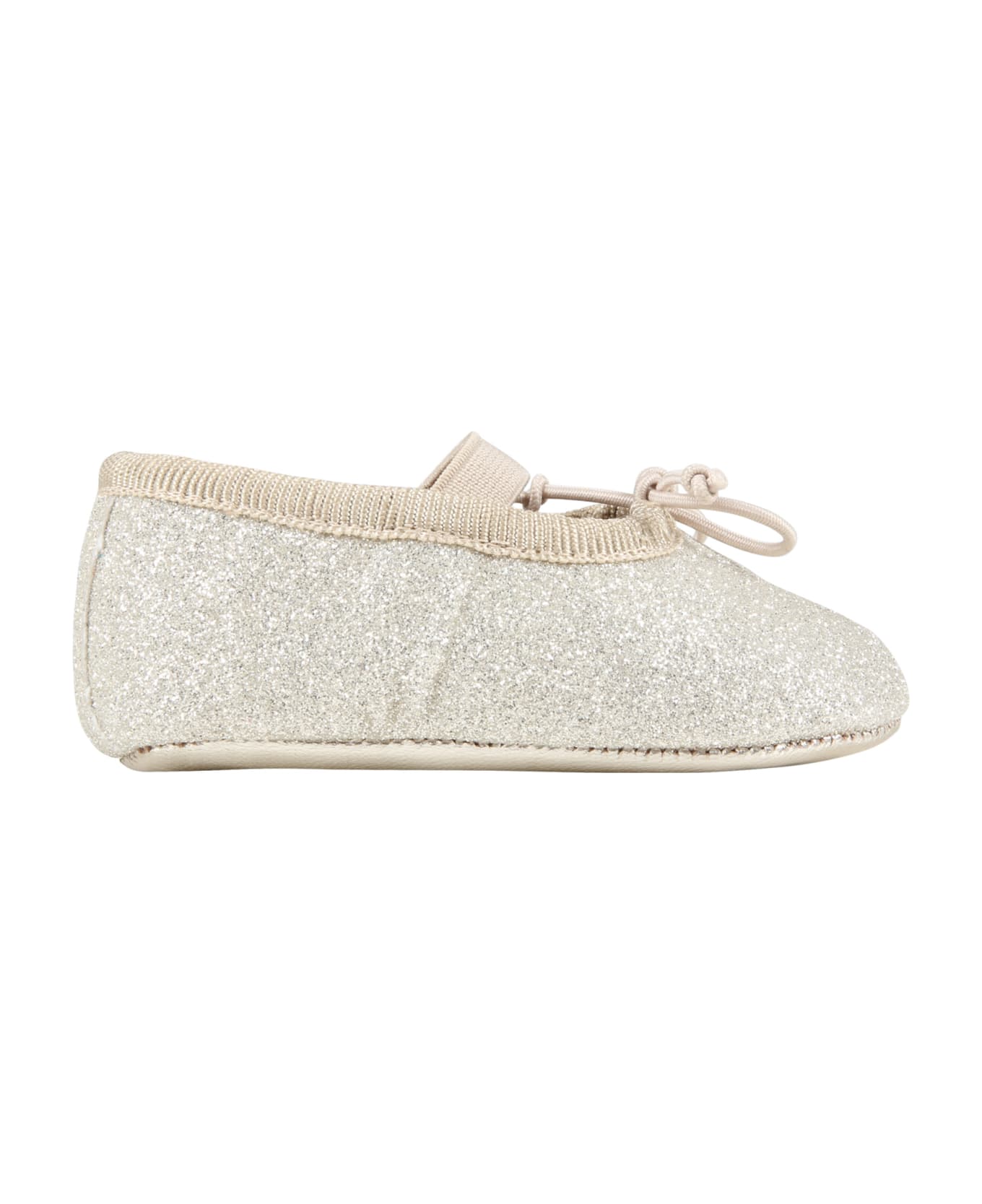 Gold ballet flats, made from lurex, with elasticized bracelet; they are embellished with bow, applied on the front.