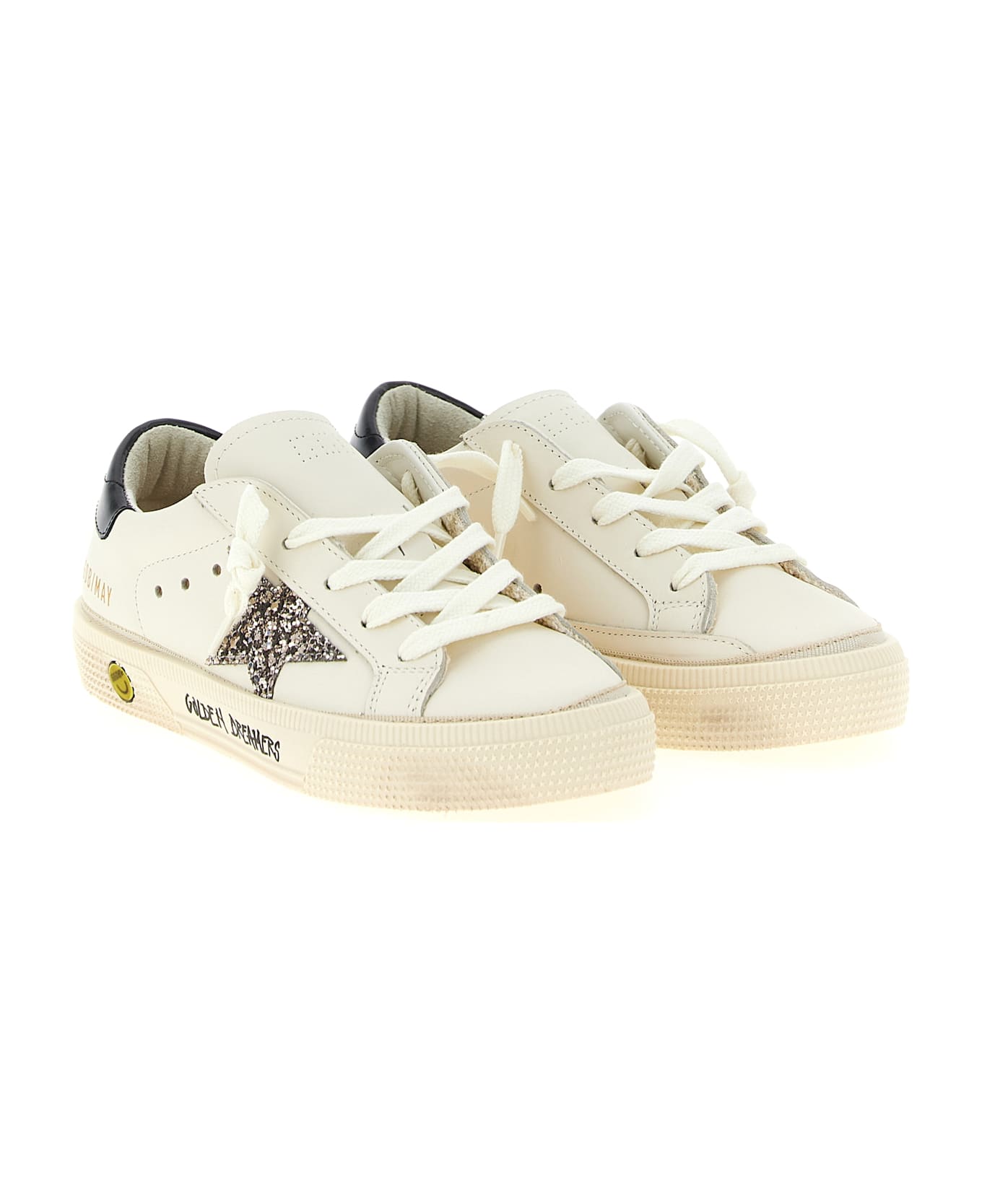 KIDS 'May' leather sneakers with glitter side star, contrasting heel, lace-up closure, vintage-treated rubber sole and logo signature.