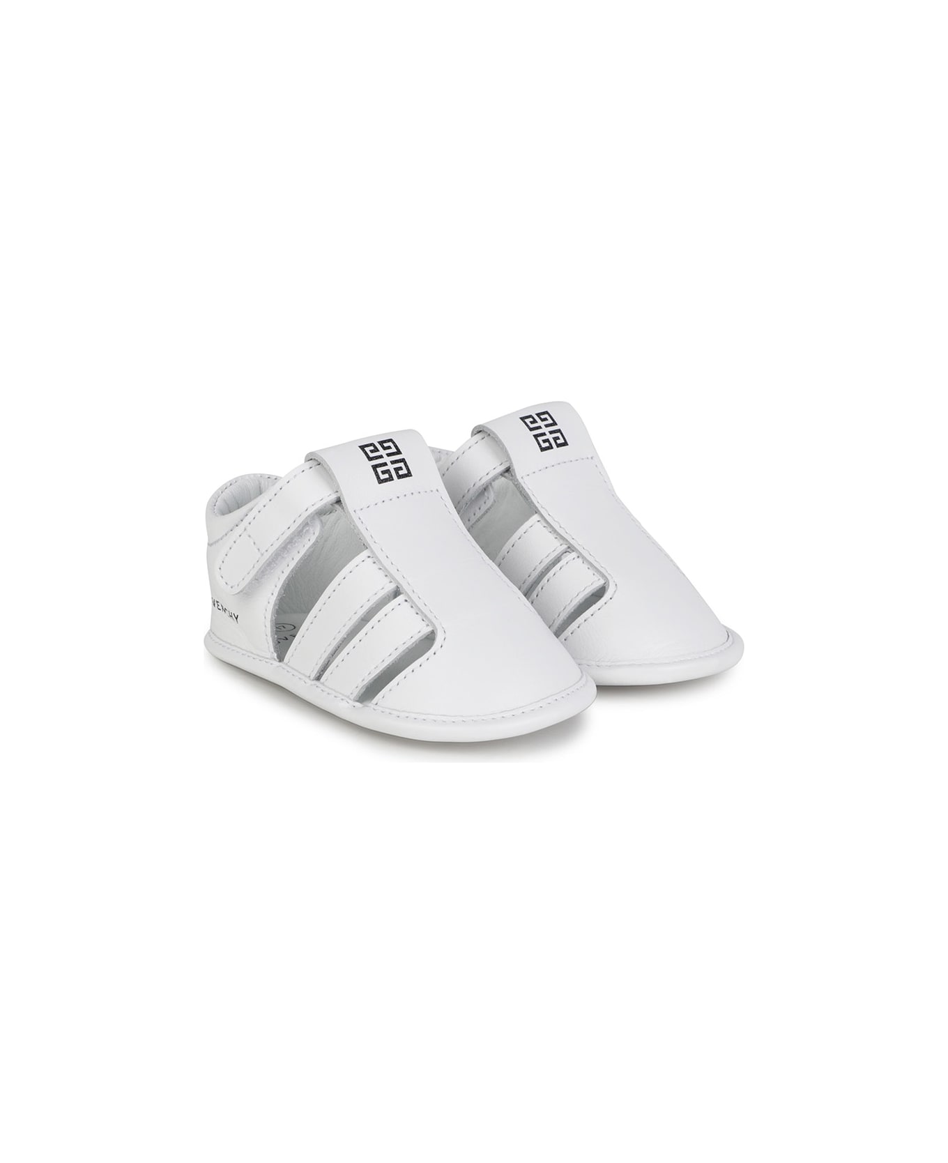 GIVENCHY Kids sneakers made of white leather with 4G logo on the front, cut-out design, GIVENCHY signature on the heel and practical strap fastening.
