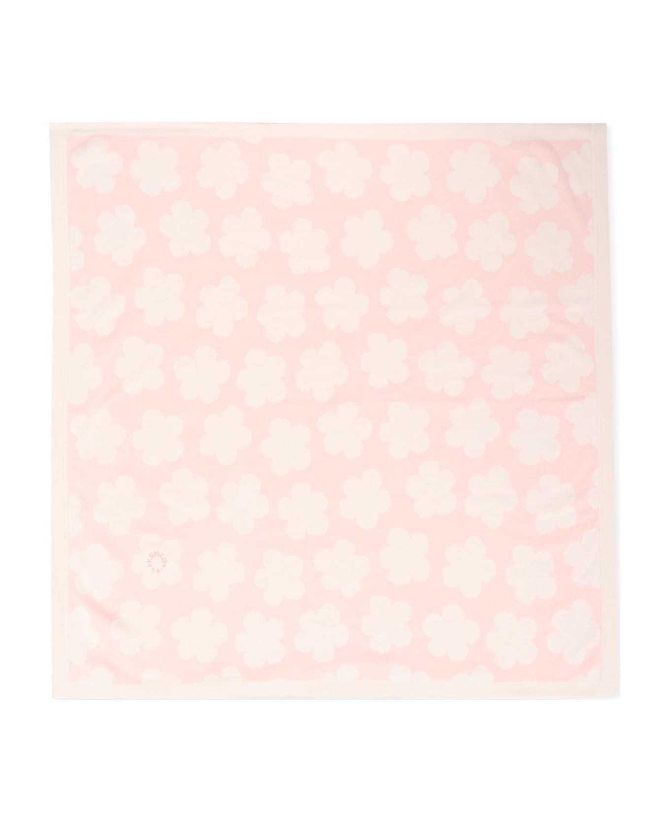 Pink knit blanket with contrasting trim; made of organic cotton. It is embellished with contrasting all-over jacquard flowers and embroidered logo.
