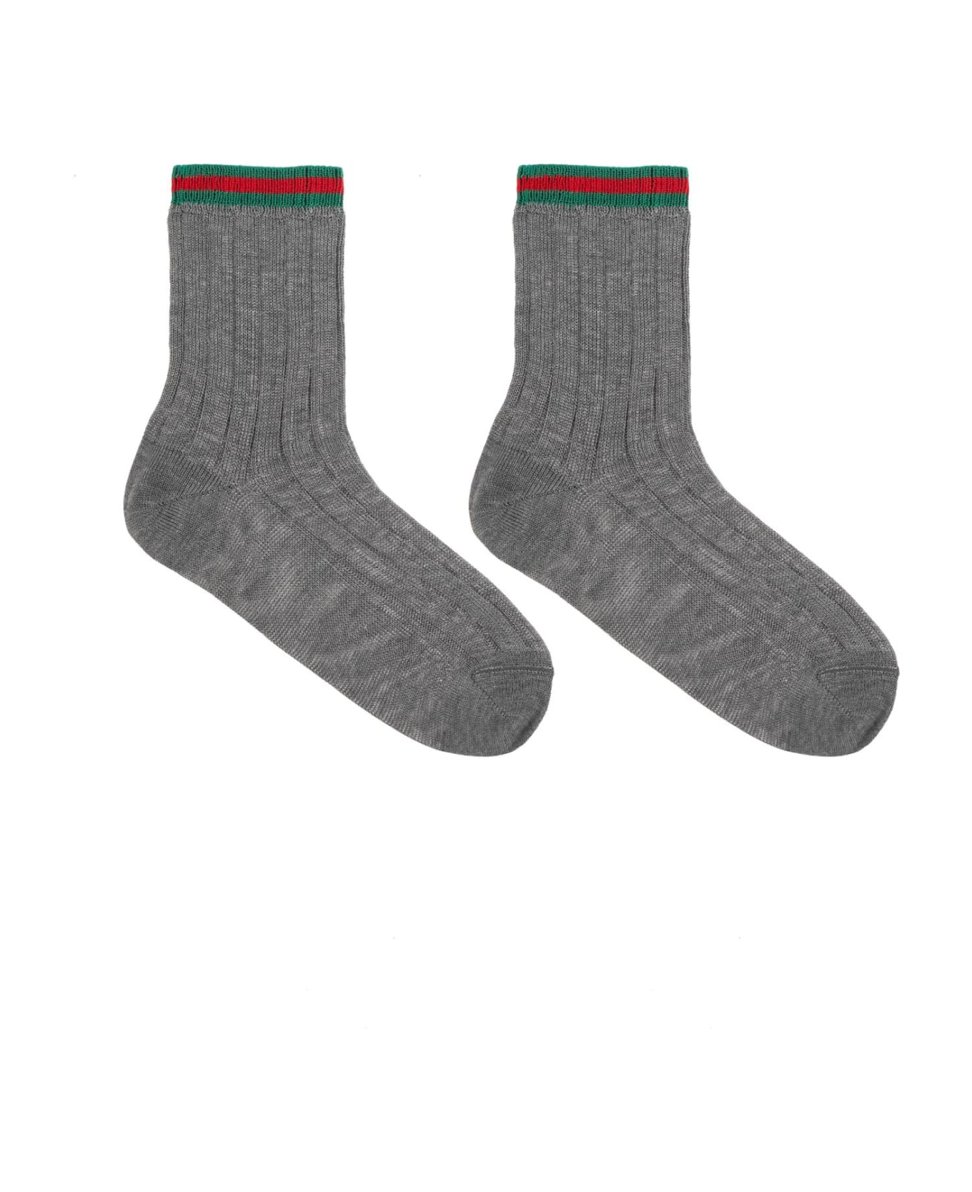 Introducing the Gucci Kids Cotton Socks , an epitome of elegance and comfort for your little ones. Expertly crafted from premium cotton, these socks ensure unparalleled softness and breathability. These exclusive gray socks feature a standard design with an extended cuff that reaches above the ankle. The subtle vertical ribbing running along the length of the socks adds a touch of sophistication, while the densely woven fabric guarantees durability and longevity. The upper section of the socks is adorned with a distinctive green and red Web stripe , a hallmark of Guccis exquisite craftsmanship. This elegant detail not only enhances the aesthetic appeal but also highlights the brands attention to detail. Part of the esteemed Gucci Kids collection, these socks blend classic design with modern flair, making them a perfect addition to your childs wardrobe. Why Choose This Product? Luxurious, breathable cotton material Durable and long-lasting design Elegant vertical ribbed pattern Signature Gucci green and red Web stripe Ideal for elevating everyday outfits Composition: 100% Cotton