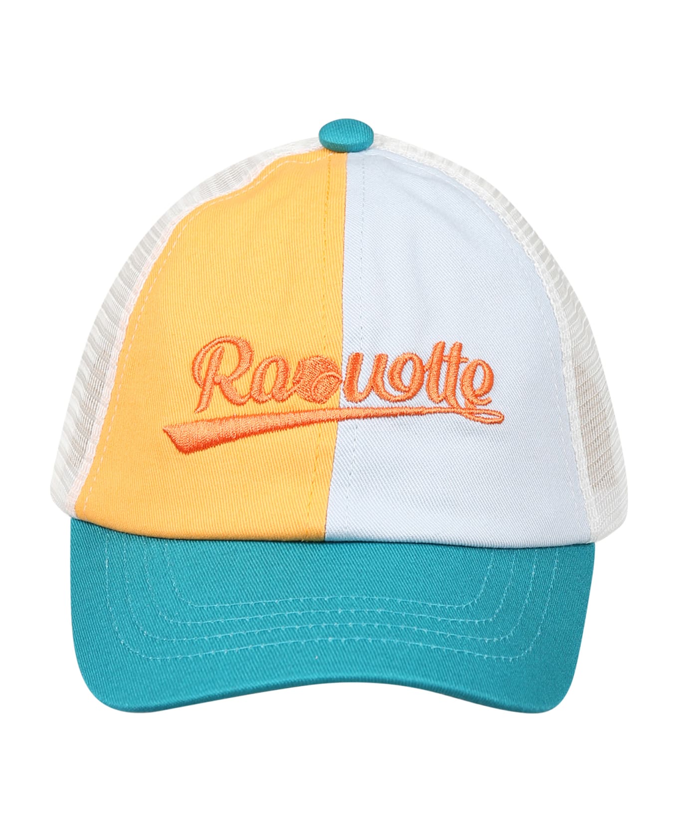 Multicolor hat, with visor, adjustable closure on the back. It is embellished with logo embroidered on the front.