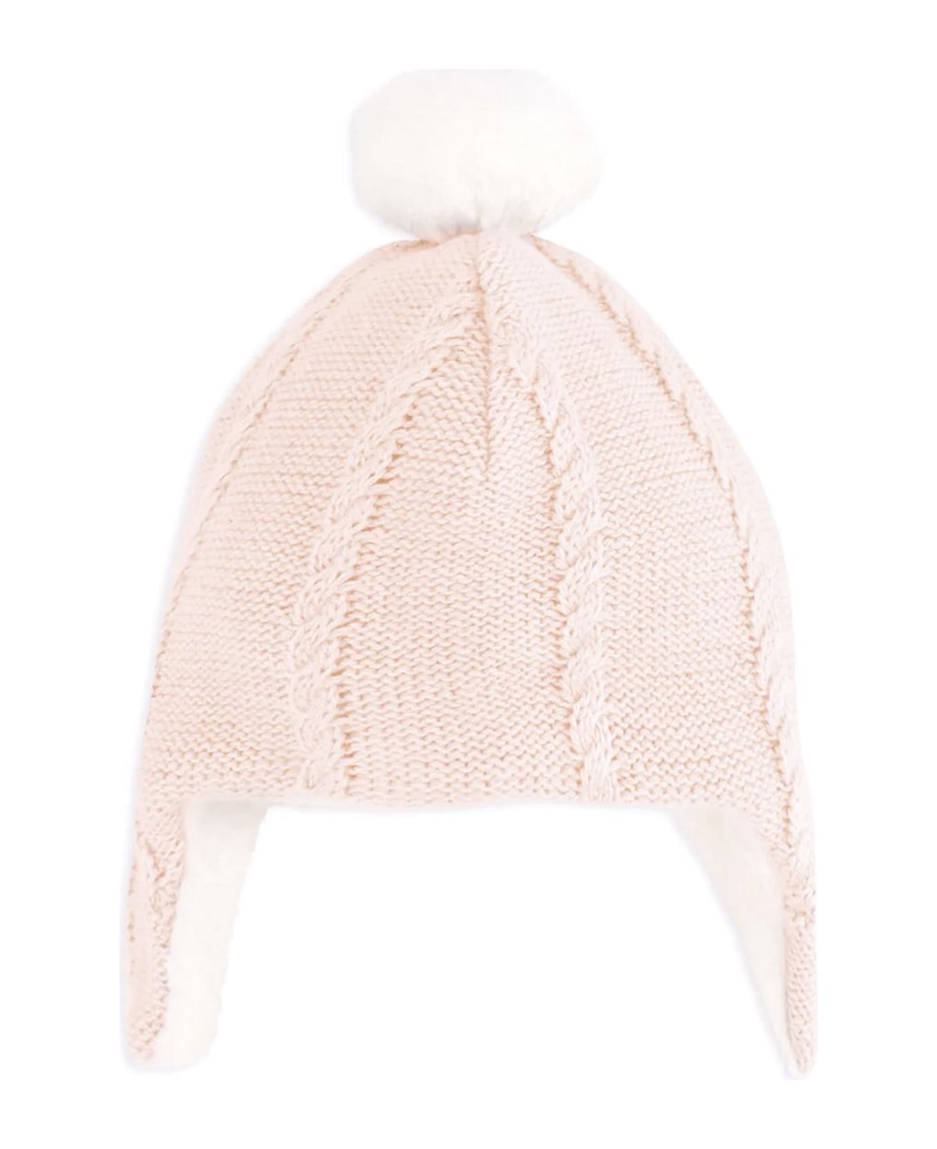 Beanie in Knitwear Light pink embellished with a Pompom and with ear cover
