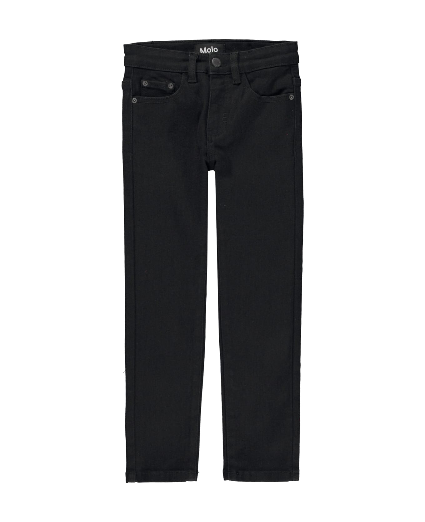 Black trousers boy Kids. Back logo patch, belt loops, button and concealed zip fastening, classic five pocket design and straight cut. Cotton 72%, Repreve® 25%, Viscose 2%, Elastane 1%