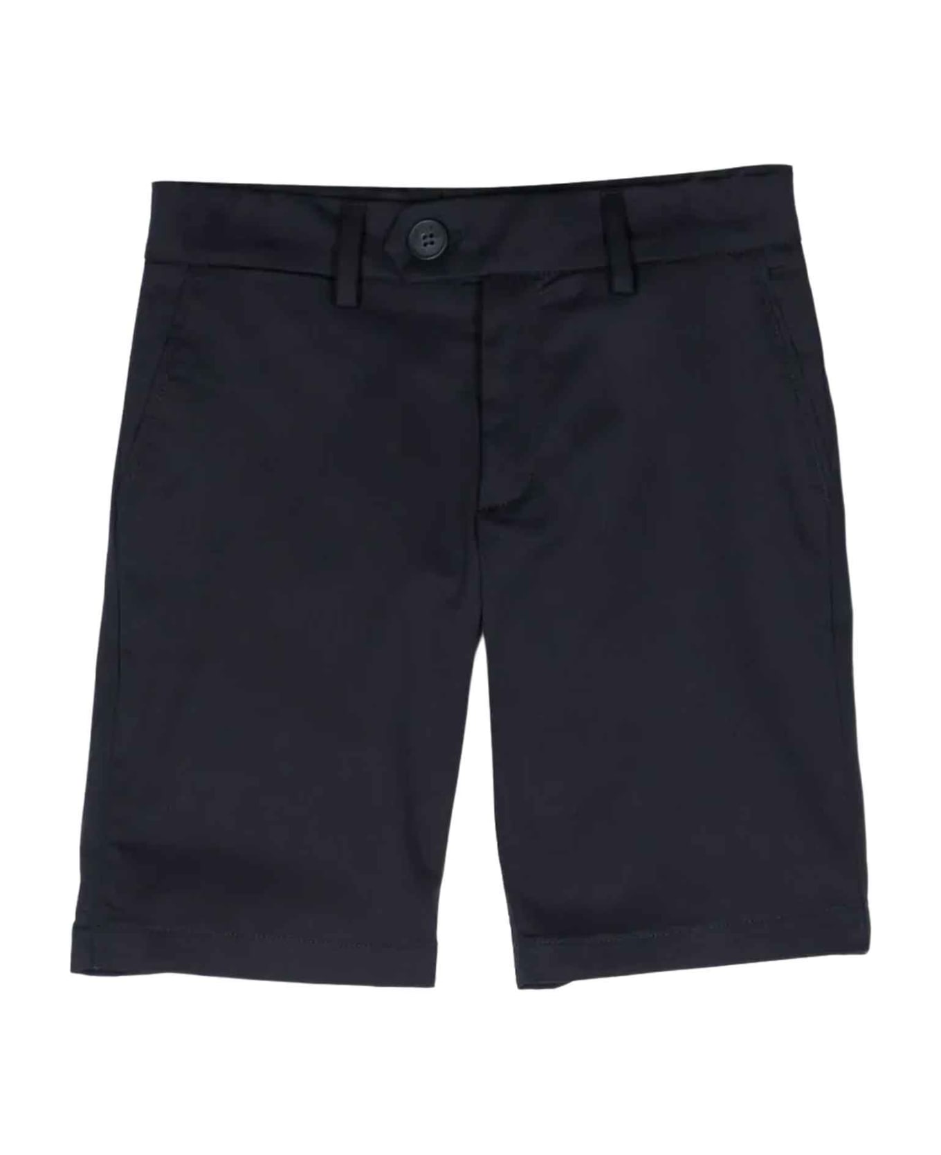 Blue shorts boy with embroidery. Belt loops, concealed front closure and two back welt pockets. Polyester 100%, Cotton 97%, Spandex/Elastane 3%