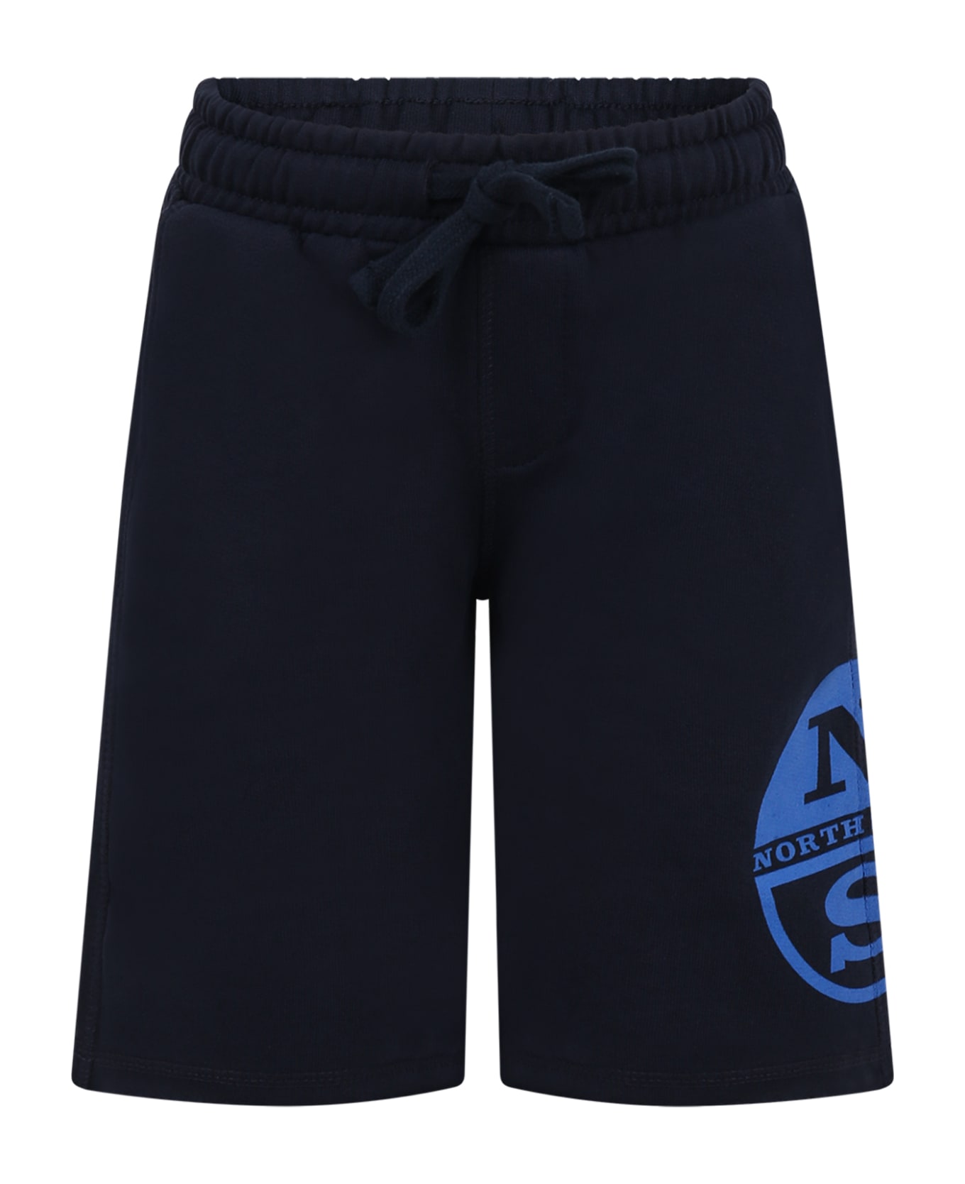 Blue shorts in brushed cotton, with elastic waistband and drawstring, side pockets and back pocket. They are embellished with side light blue logo.