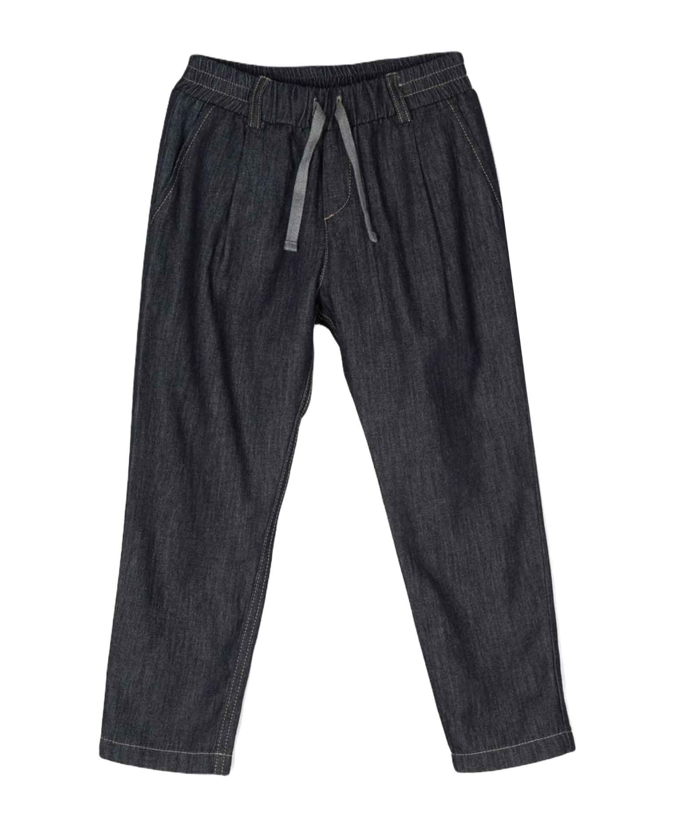 Blue trousers boy. Waist with elasticated drawstring, belt loops, two side welt pockets and two back pockets with flaps. 100% Cotton