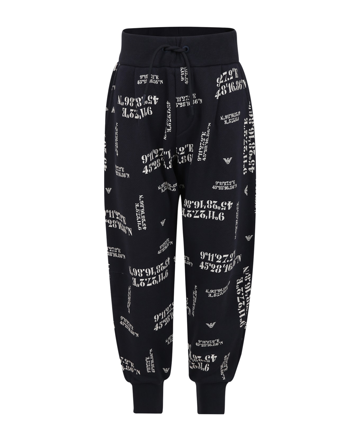 Color: Blue Blue brushed cotton trousers, with elastic waist, drawstring, side pockets. They are embellished with numbers print and iconic all-over eagle. 100% Cotton. Machine wash at 30C.
