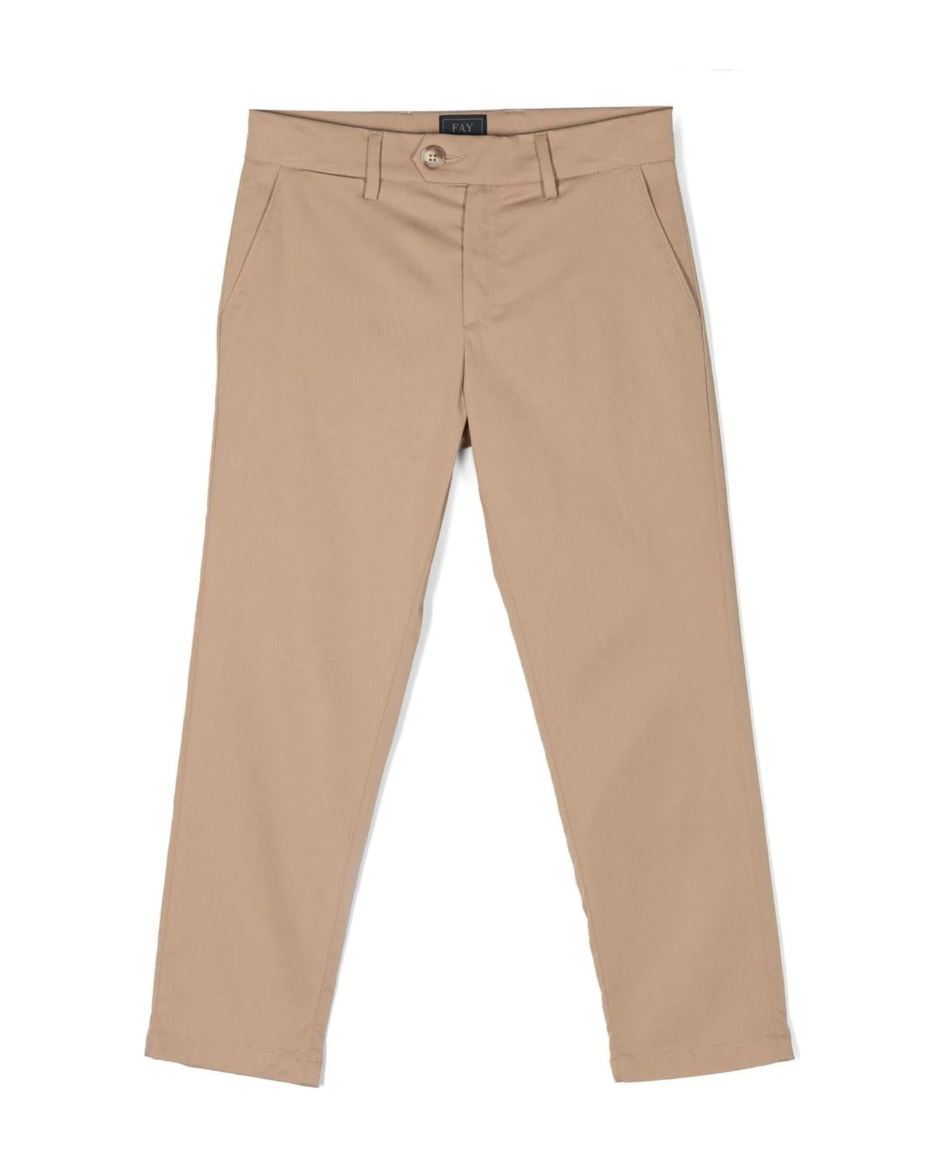 Brown cotton trousers cotton blend slim cut slim cut belt loops off-centre front button fastening two side inset pockets two rear welt pockets