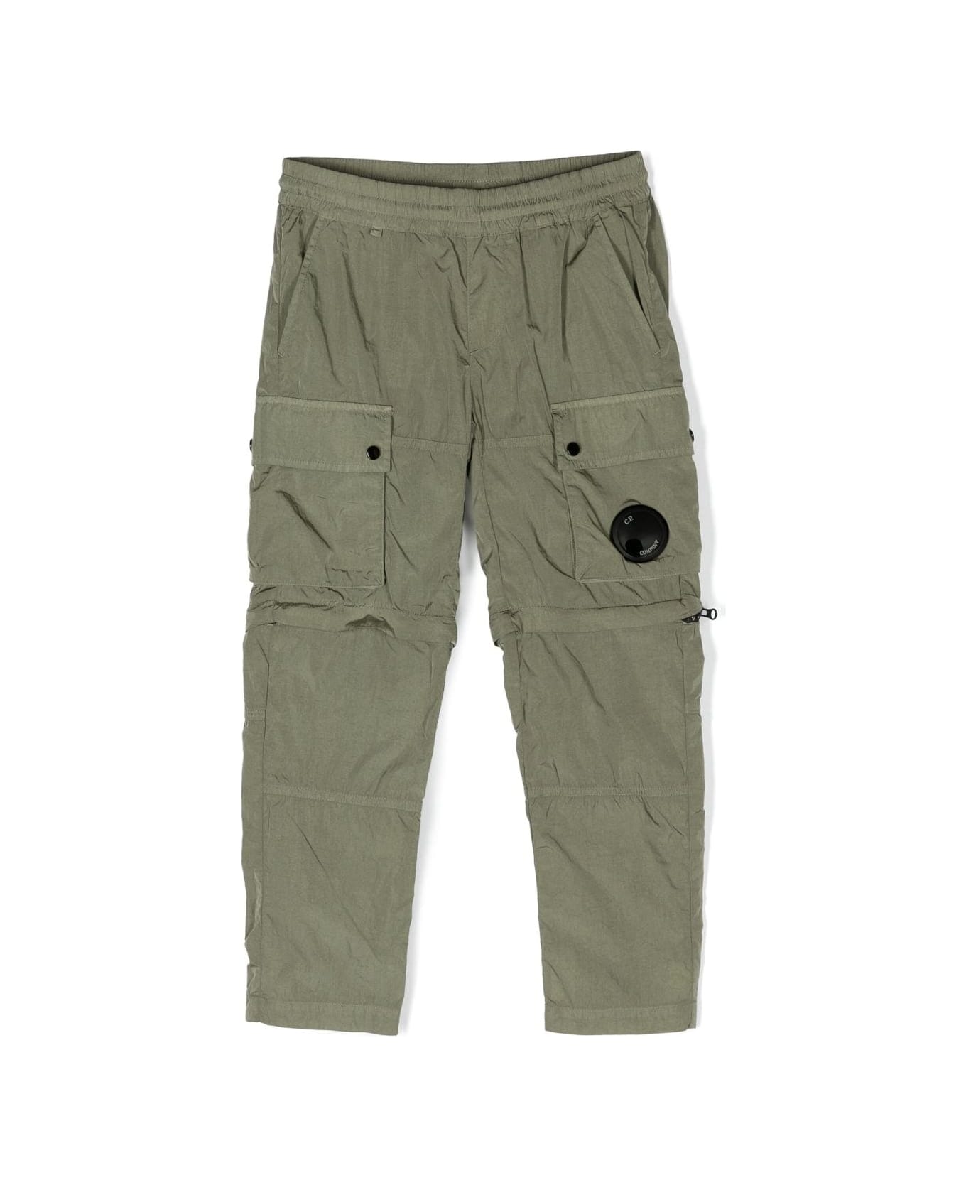 Olive green, raincoat, signature Lens motif, elasticated waist, two side diagonal pockets, two side cargo pockets and detachable pant. Composition