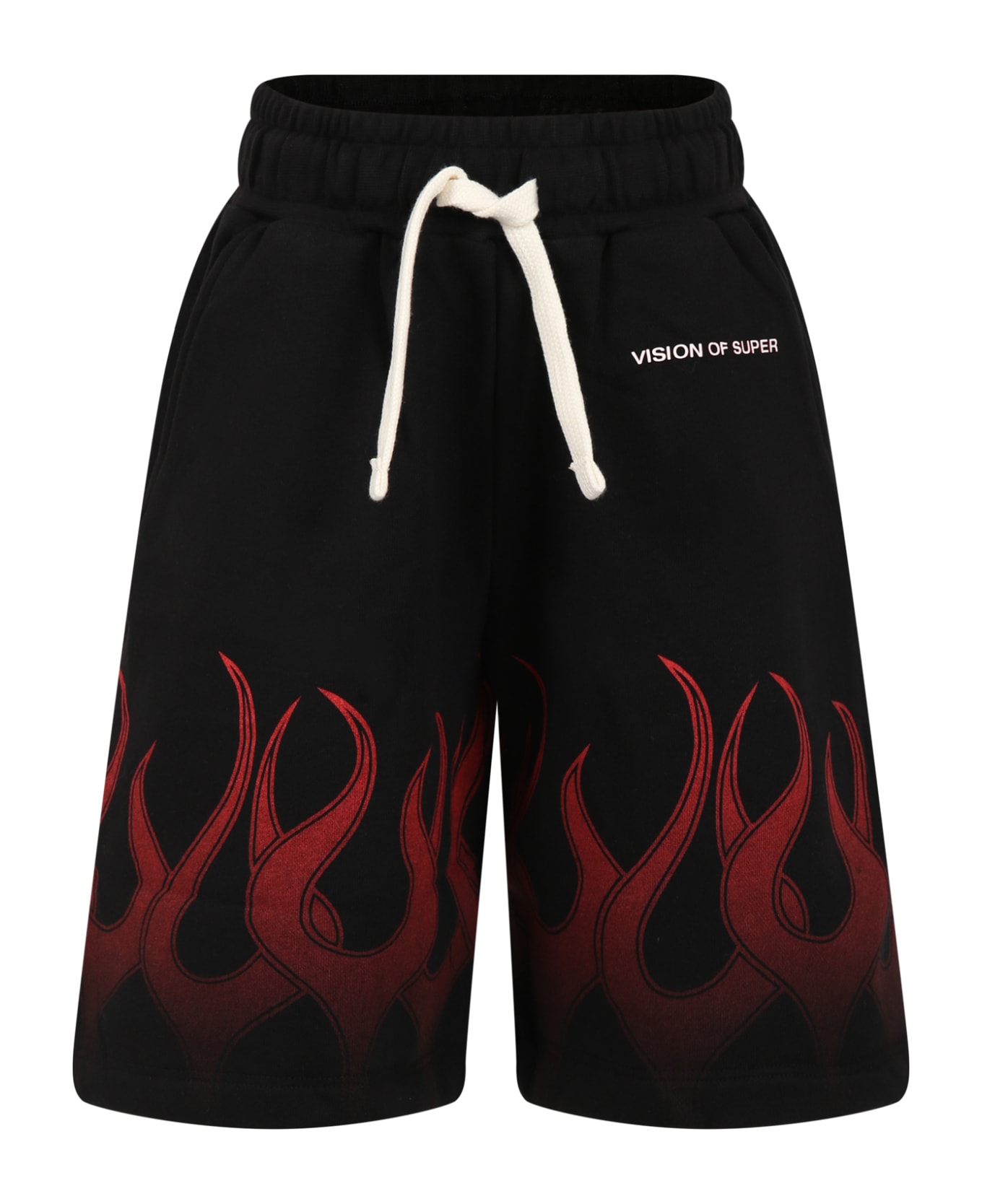 Casual black trouser in brushed cotton, with elastic waistband and drawstring, side pockets. It is embellished with red flames and black logo on the front.