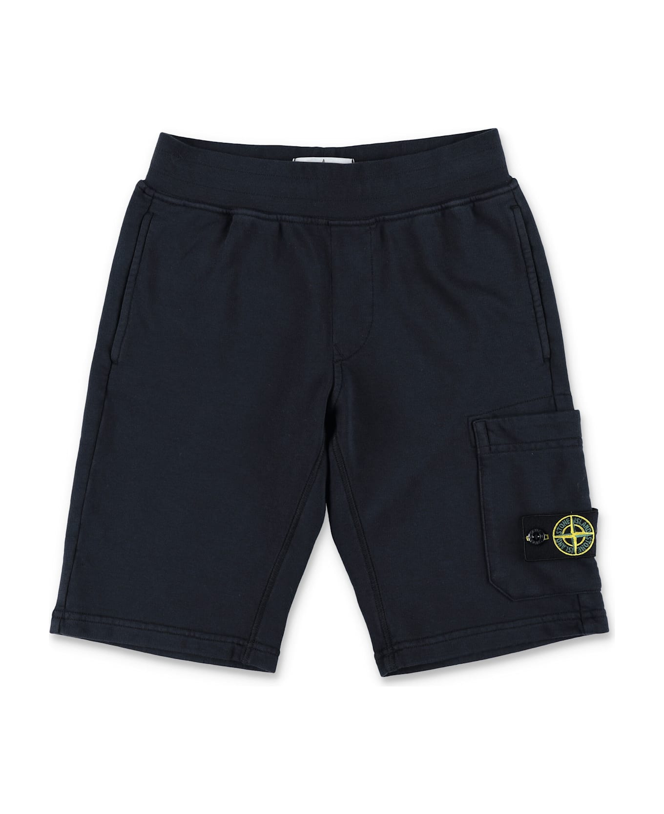 Cotton Fleece Cargo Bermuda Shorts By Stone Island Junior. Featuring: Elastic Waistband Welt Hand Pockets One Patch Pocket On The Left Leg With Stone Island Badge Back Welt Pocket
