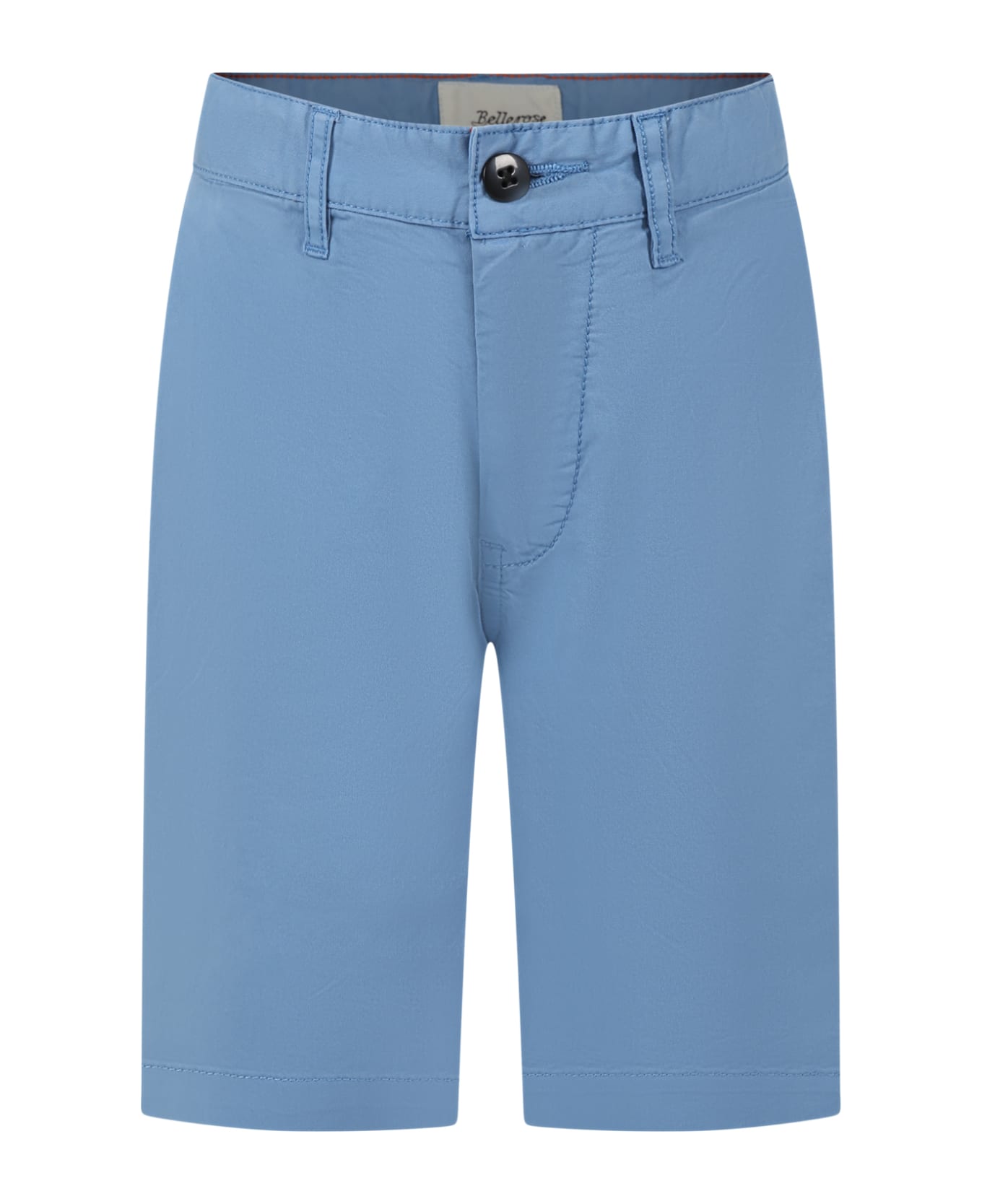 Light blue shorts, with belt loops, zip and button closure, adjustable waist thanks to internal elastic bands with button, side and back pockets.