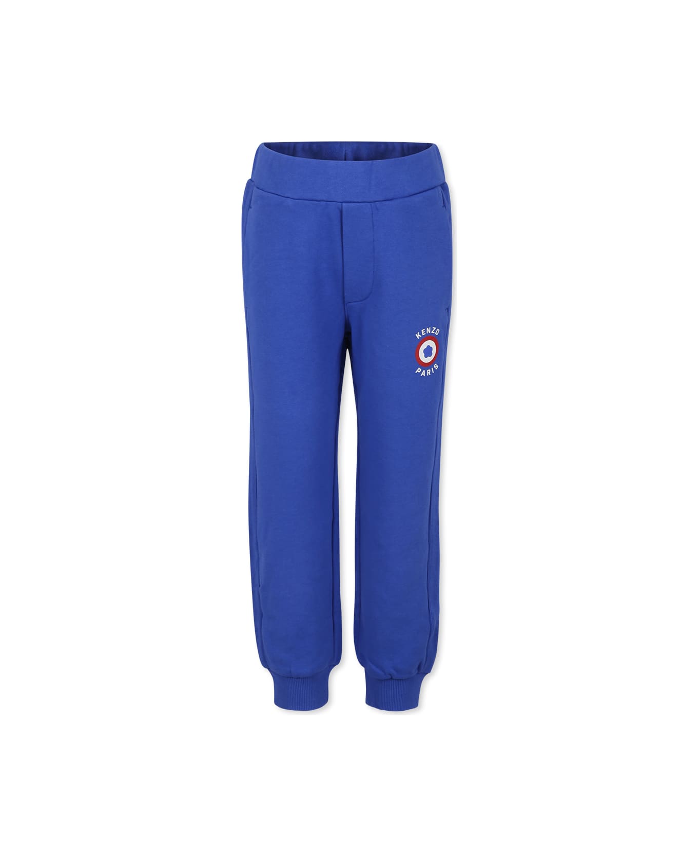 Light blue trousers from the French brand Kenzo Kids, with an urban and multicultural DNA, made of cotton jersey. The brushed cotton trousers have an elasticated waist for a comfortable fit, practical side pockets and ribbed ankles. They are embellished with Target Flower print on the front.