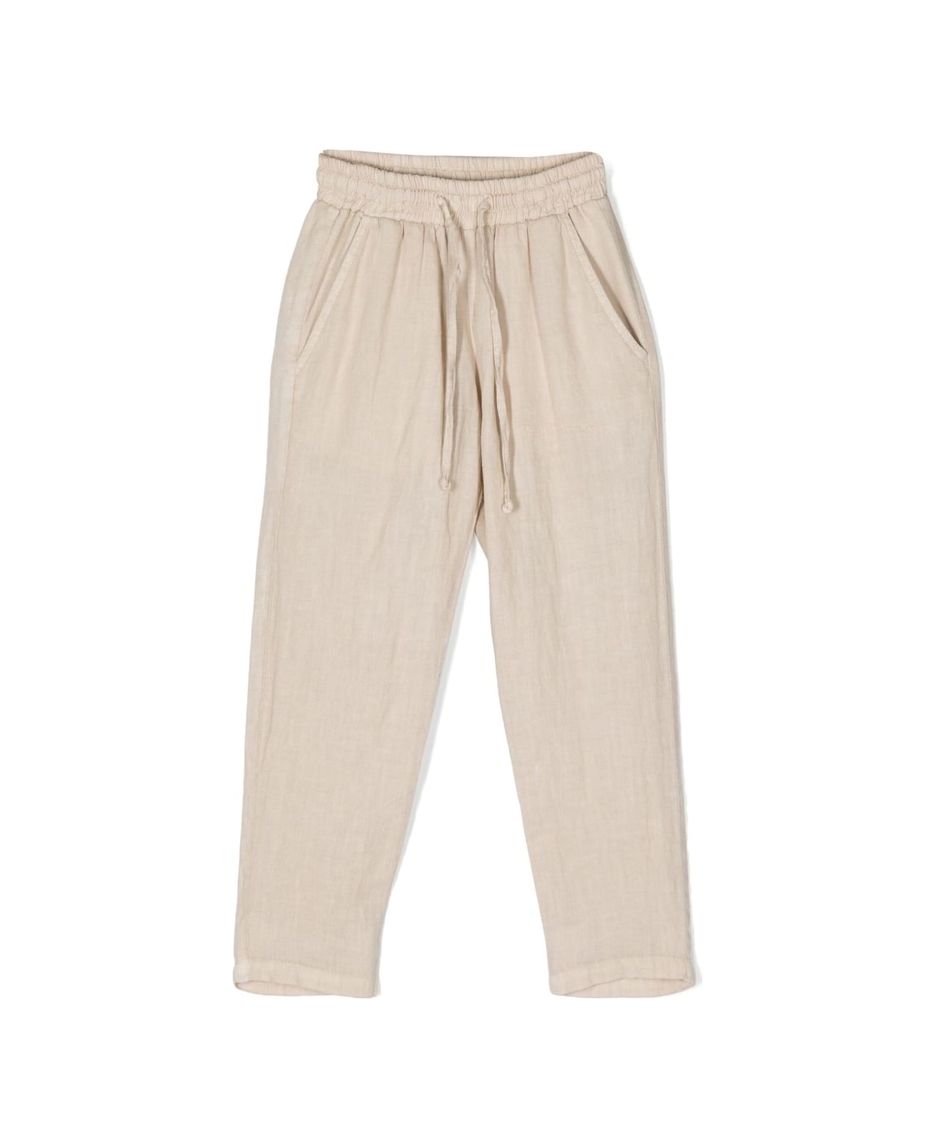 Linen trousers with drawstring waist by DANIELE ALESSANDRINI. Light beige color, flax/linen, tapered leg, elastic waistband with drawstring, two side slit pockets and two back patch pockets. Conscious: This item contains at least 50% low impact materials, certified or widely recognized as having a lower environmental impact. Origin: Italy Composition 100% linen