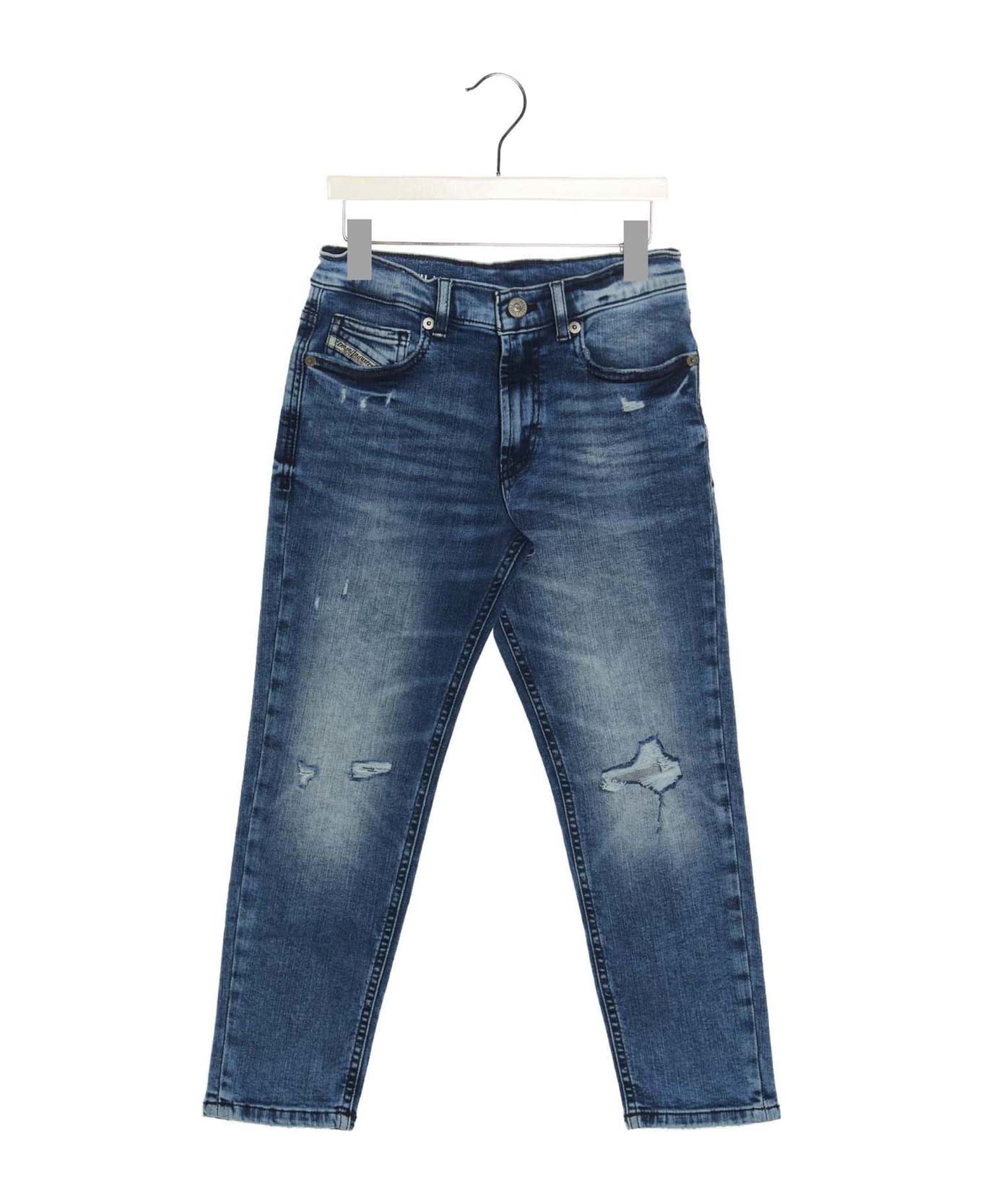 Lucas cotton denim jeans with used effect details, a zip and button closure, five pockets and a logo label at the back. Composition: 98% cotton 2% elastane