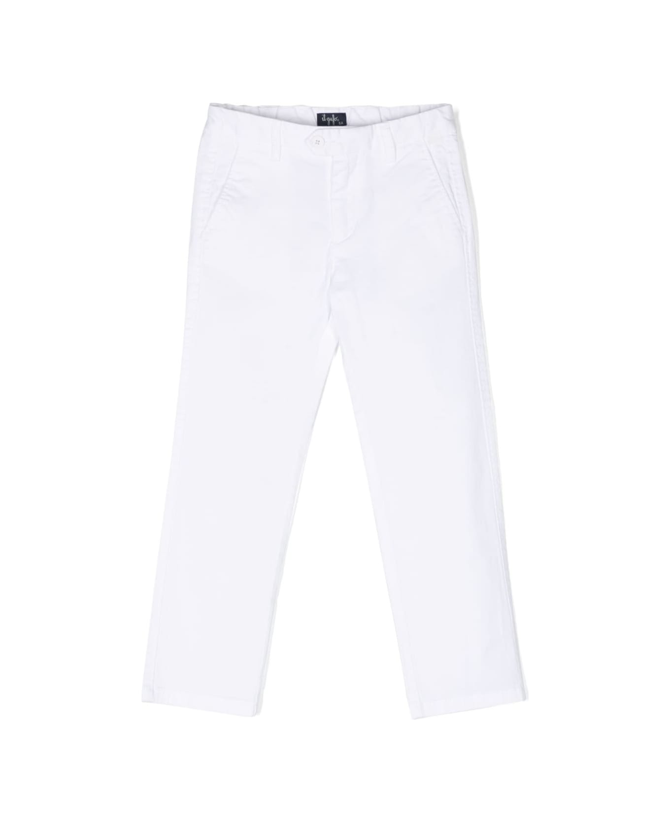 White Trousers With Tonal Button In Stretch Botton Boy