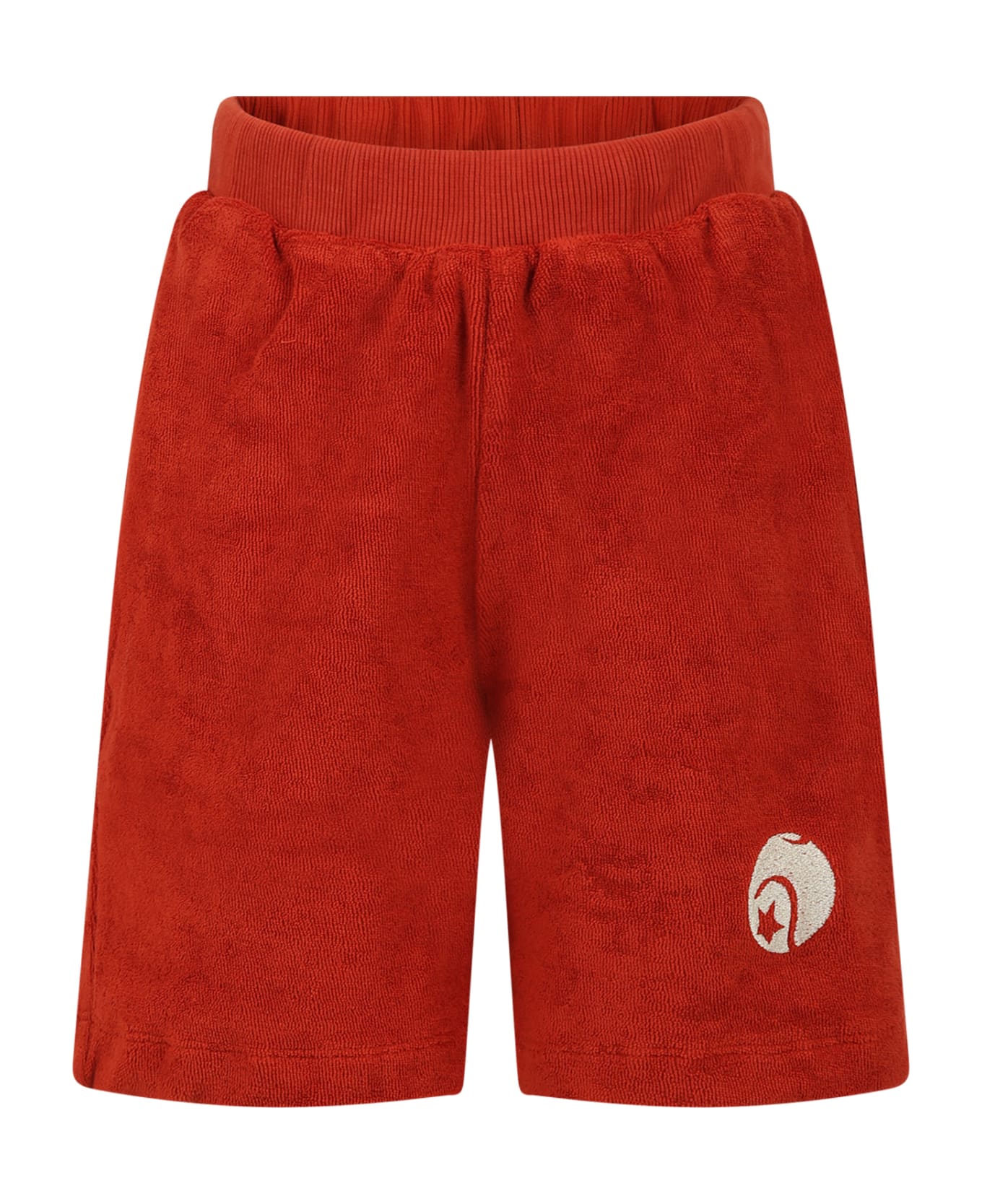 Descrizione: Shorts rosso, in cotone organico, in spugna, con elastico in vita e tasche laterali. Sono decorati con ricamo sulla parte anteriore.