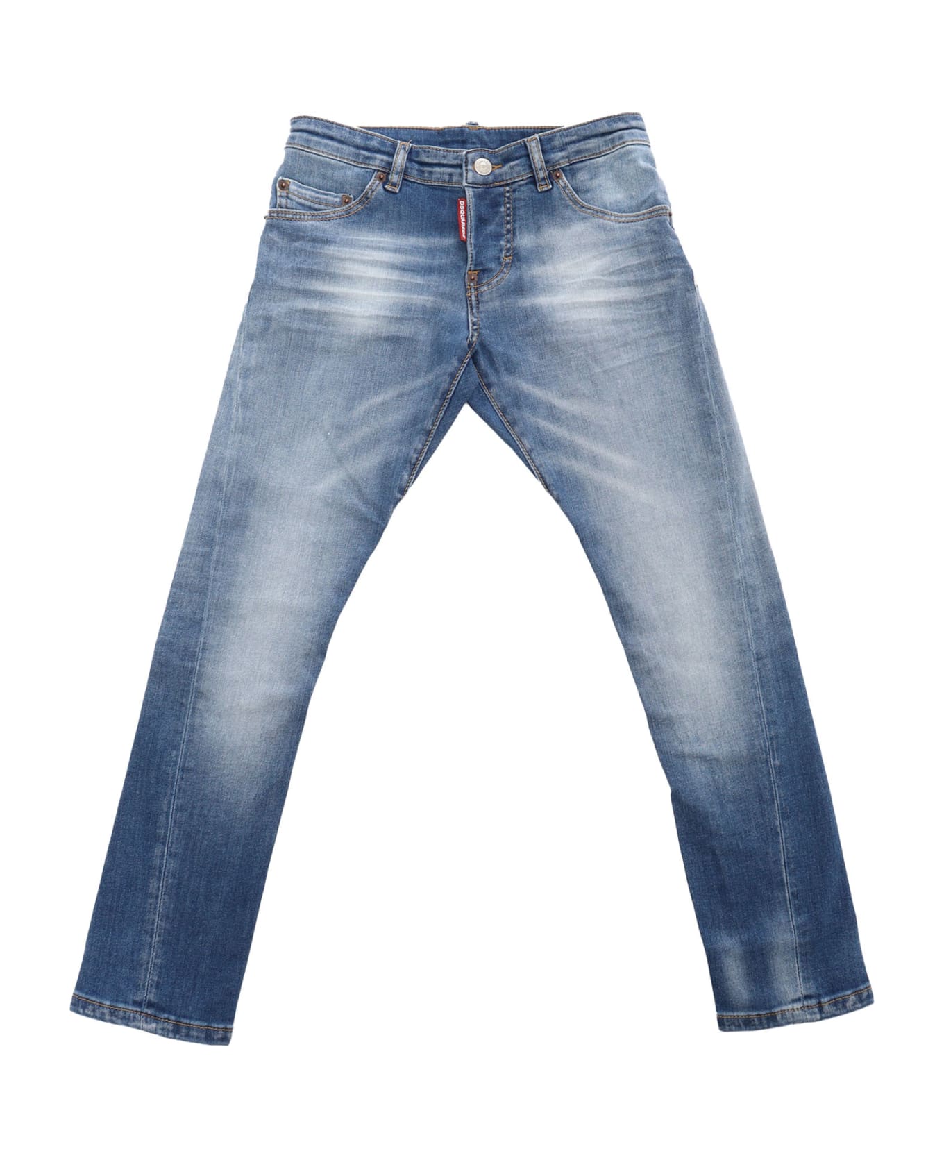 Stretch denim jeans, stone washed, logo, 5 pockets, belt loops, logo