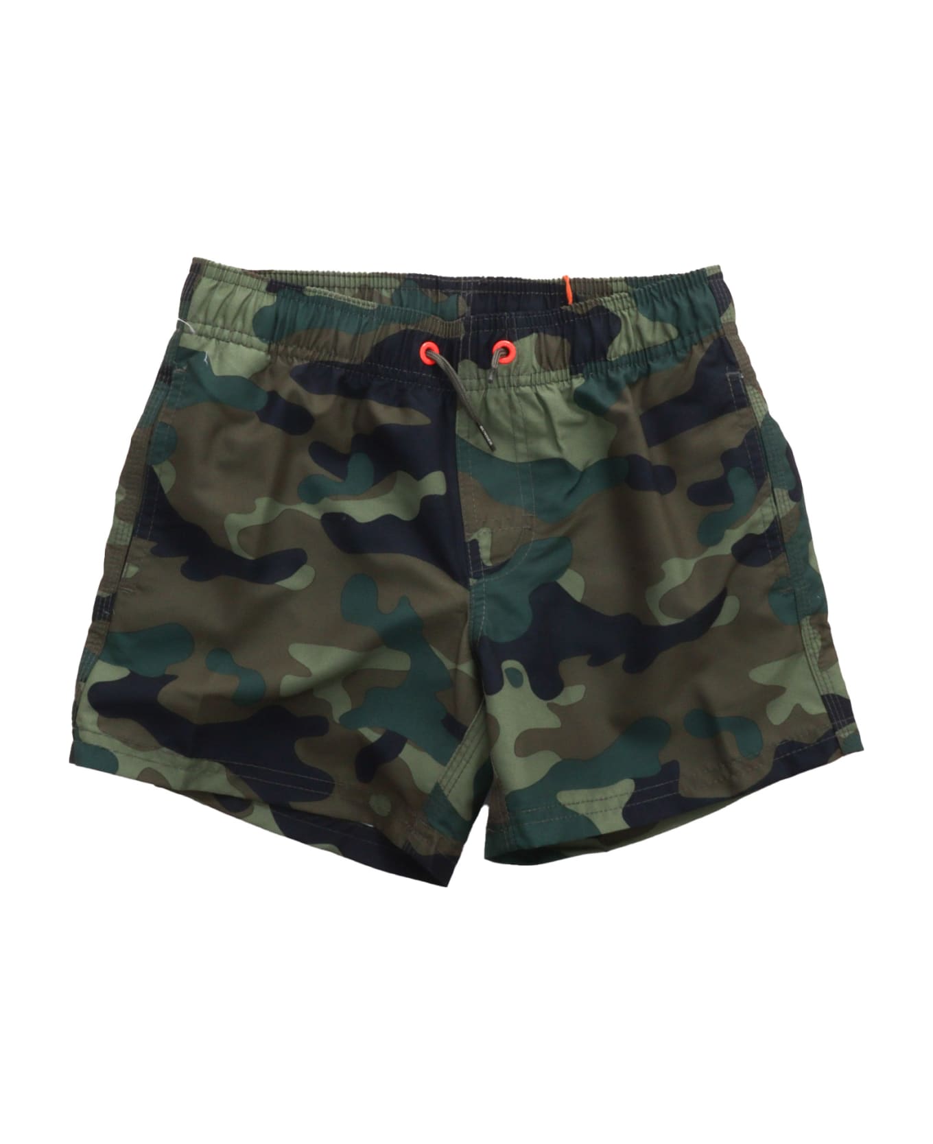 Technical fabric swim trunks, camouflage print, contrasting bands on the back, drawstring at the waist, pocket with flap and logo on the back Composition: 100% POLYESTER