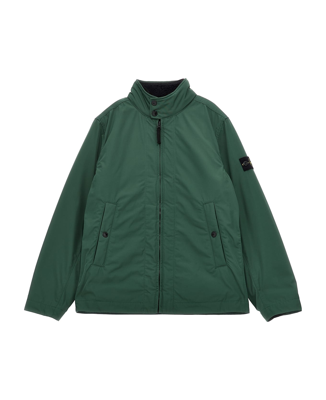 KIDS 2 in 1 water-repellent nylon jacket with logo badge, zip closure, pockets, long sleeves. Shearling-effect fabric inner lining with zip closure, pockets, long sleeves, removable and usable as a sweatshirt.