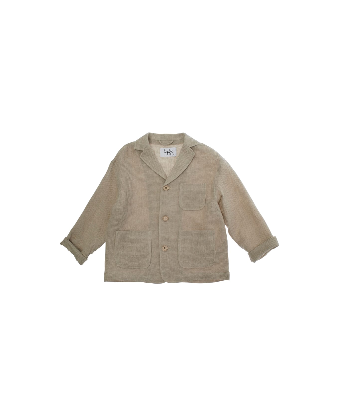 Beige Jacket With Notched Revers And Turn-up Cuffs In Linen Boy