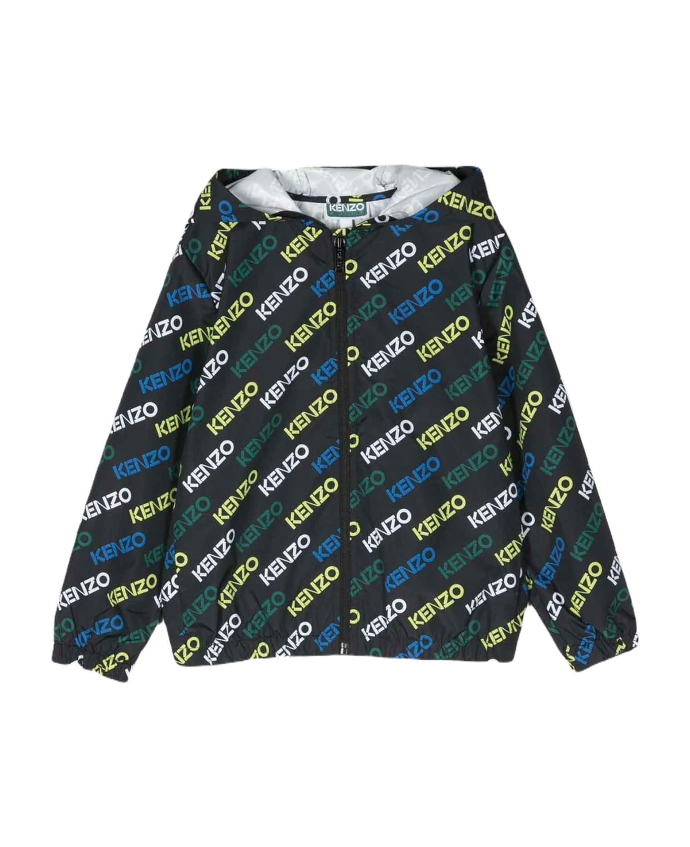 black jacket unisex. All-over logo print, hood, front zip closure, elasticated cuffs and elasticated hem. 100% polyester